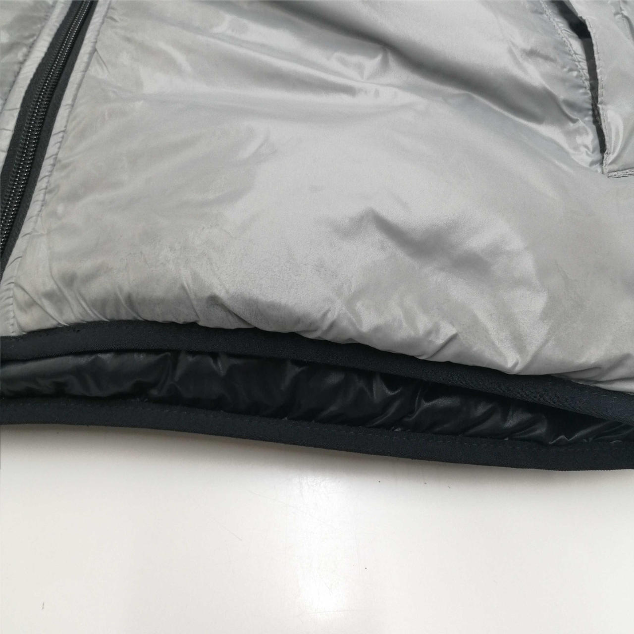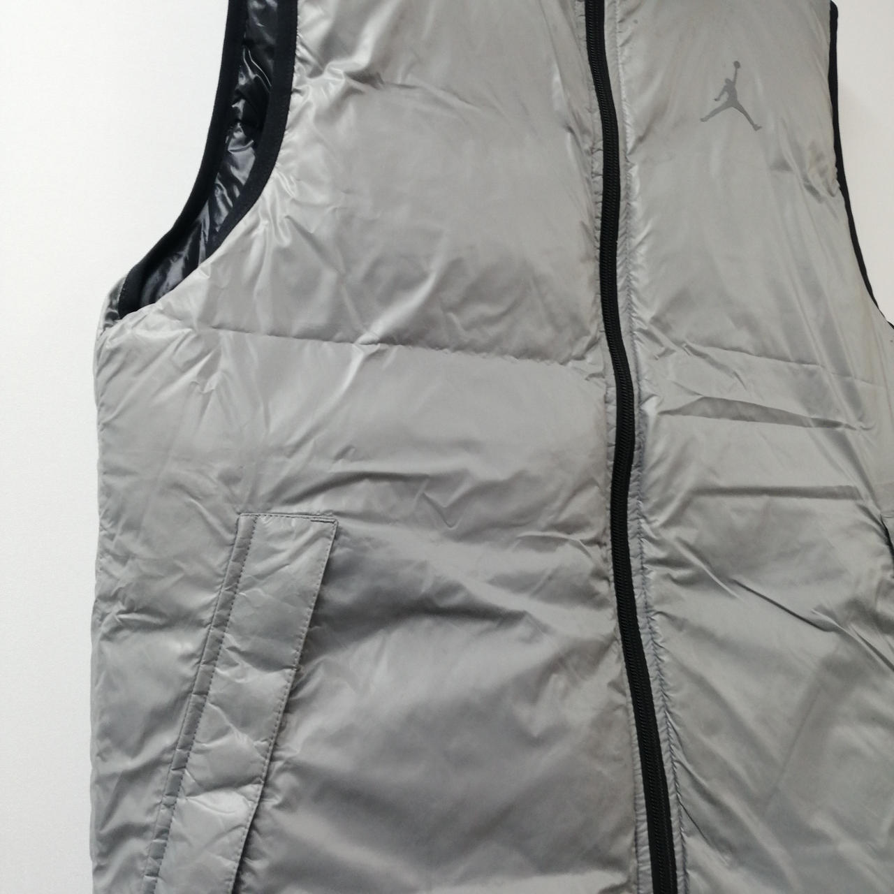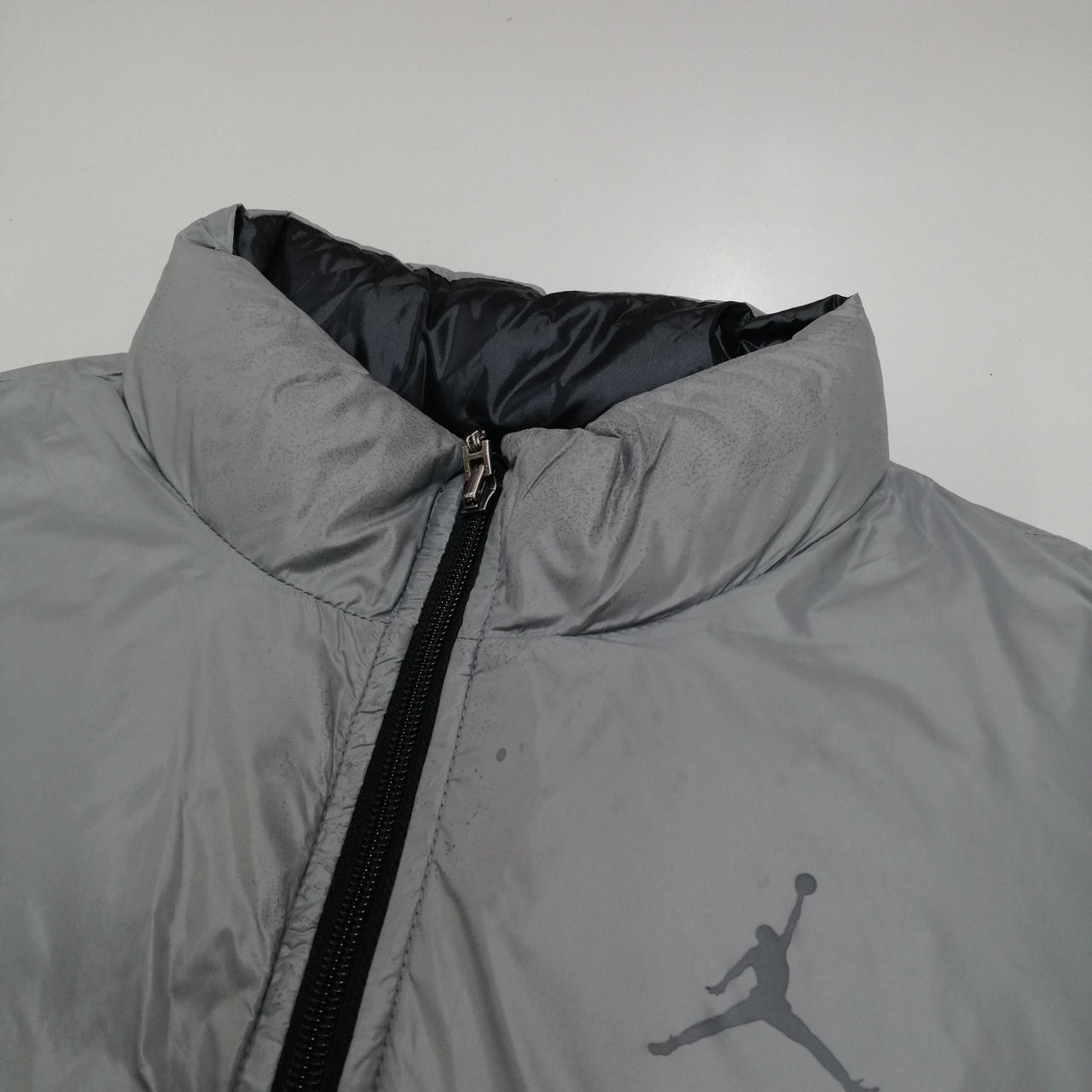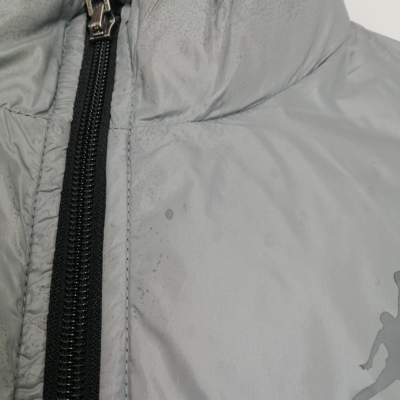 ロゴ剥がれ、襟元に傷み、シミ汚れが見受けられます。 |