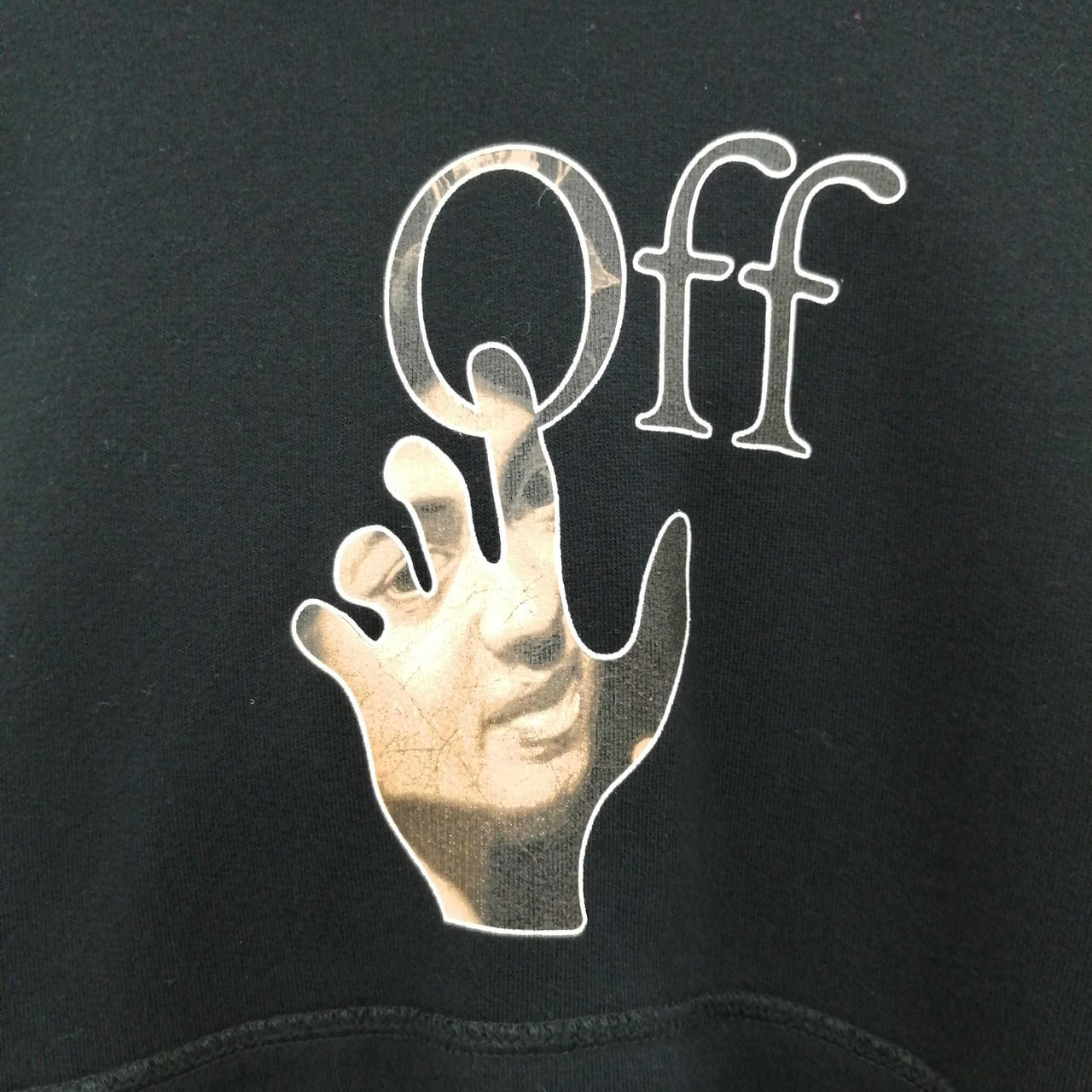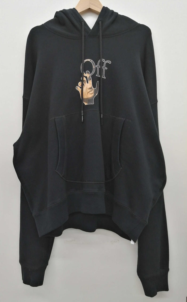 ハンドロゴの中に、イタリアバロック絵画の巨匠カラヴァッジョの絵画をモチーフとしたグラフィックプリントが施されたプルオーバーフーディです。 |