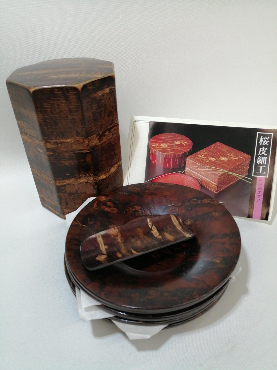 茶筒・茶匙・茶托5枚。説明書のみ、箱無し。 |