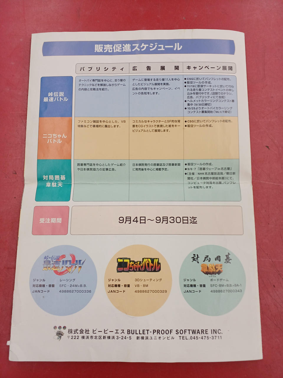 未発売の幻のゲームソフト「ニコちゃんバトル」の発売予告が掲載されたパンフレットです!