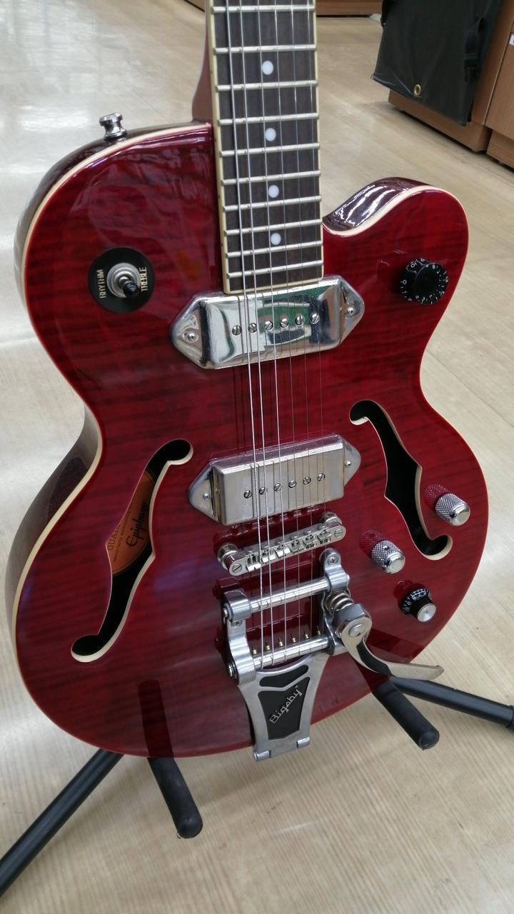 ボディに様々な仕様を盛り込んだ、エピフォンオリジナルのセミアコWILDKATです! |
