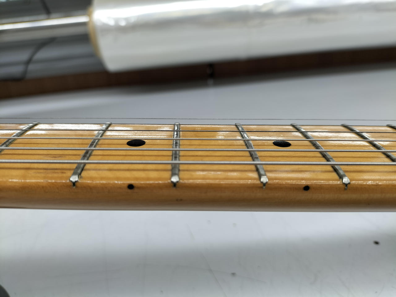 ※お問い合わせがございましたので、フレットの写真を追加させていただきました。重量に関しては正確に測れる物がないので表記出来ません。よろしくお願いいたします。 |