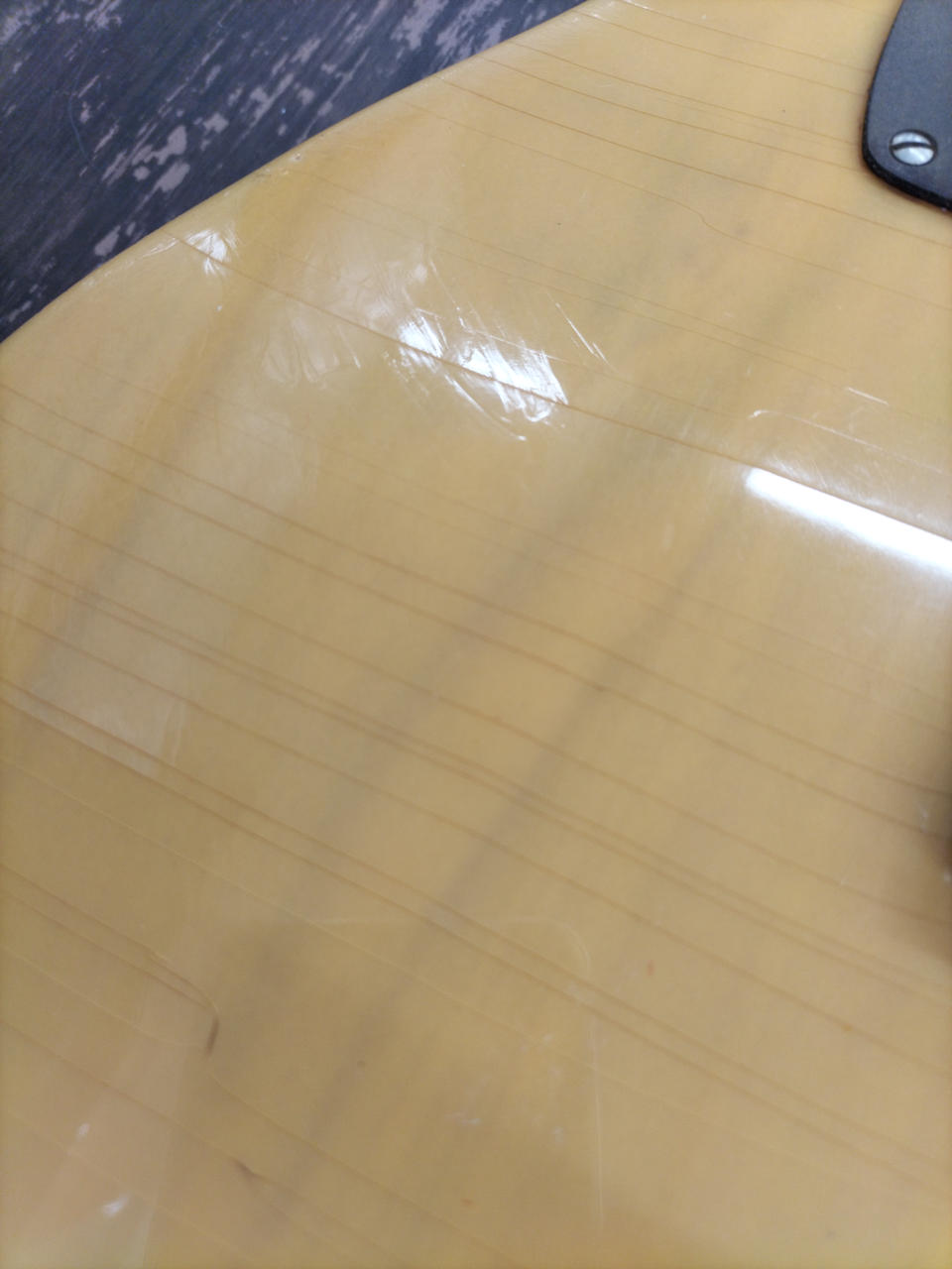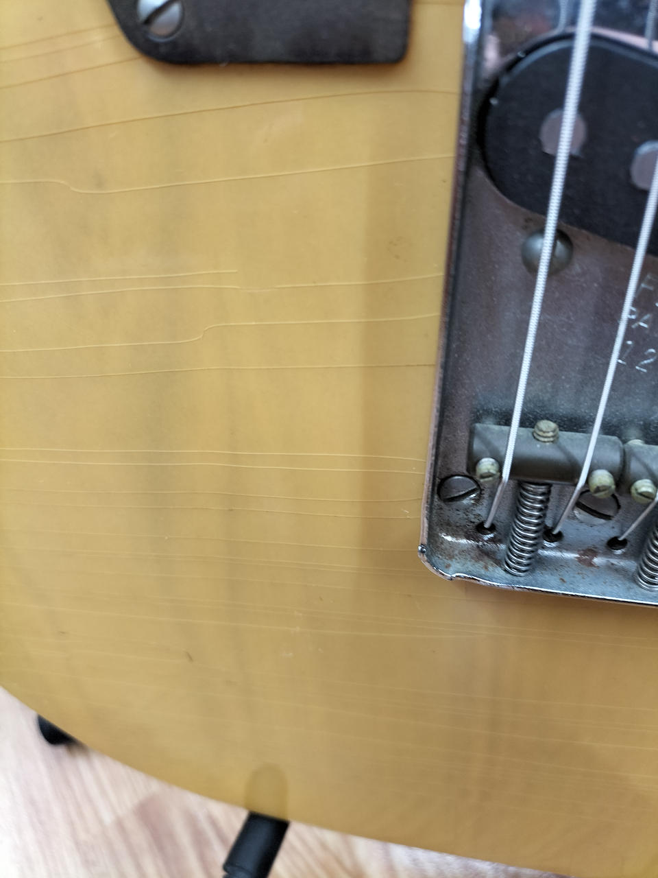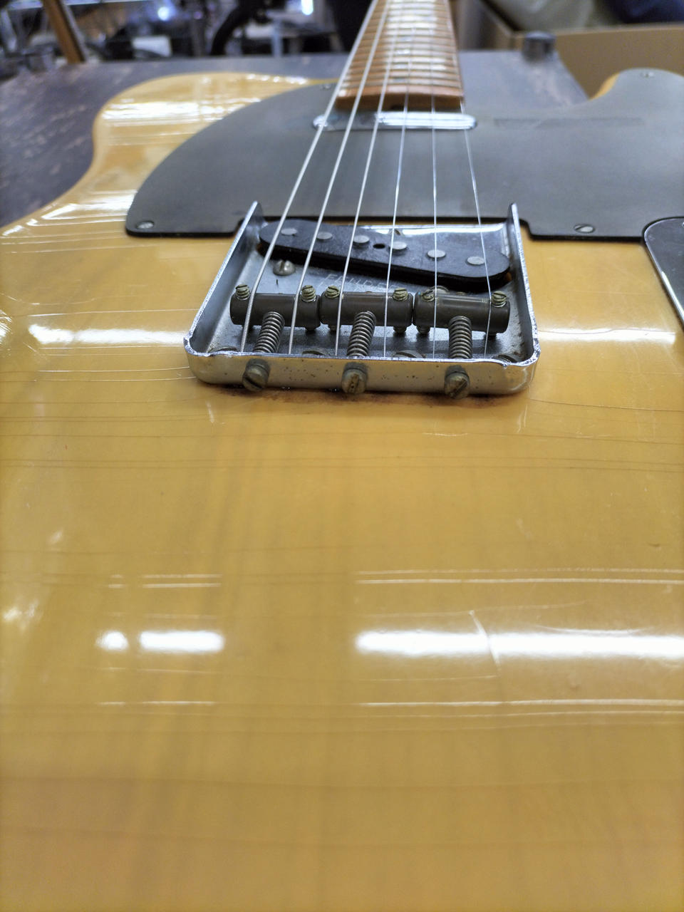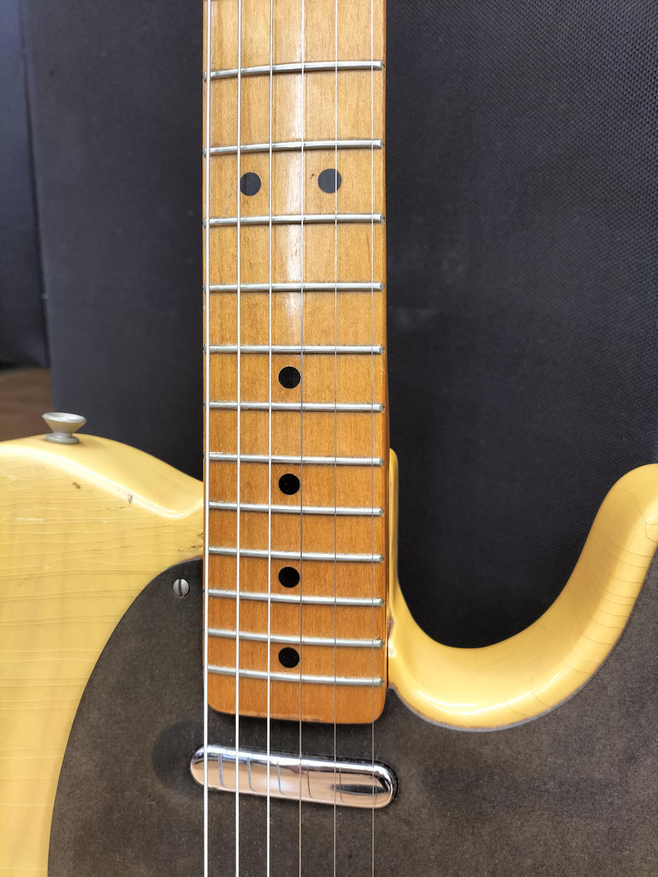 フレット残りは7割弱ほど。ボディー本体はクラックが入り、ヴィンテージ感満載です! |