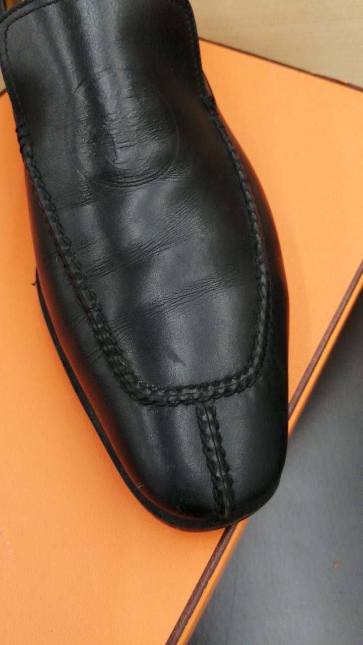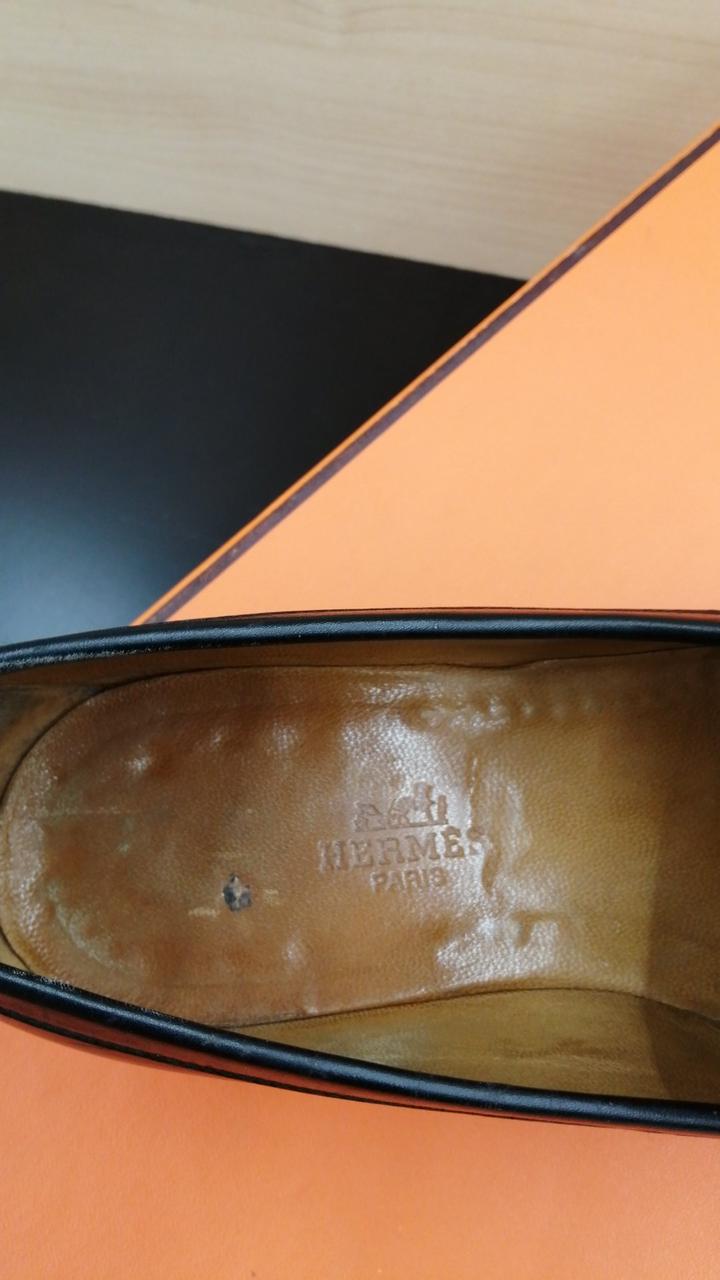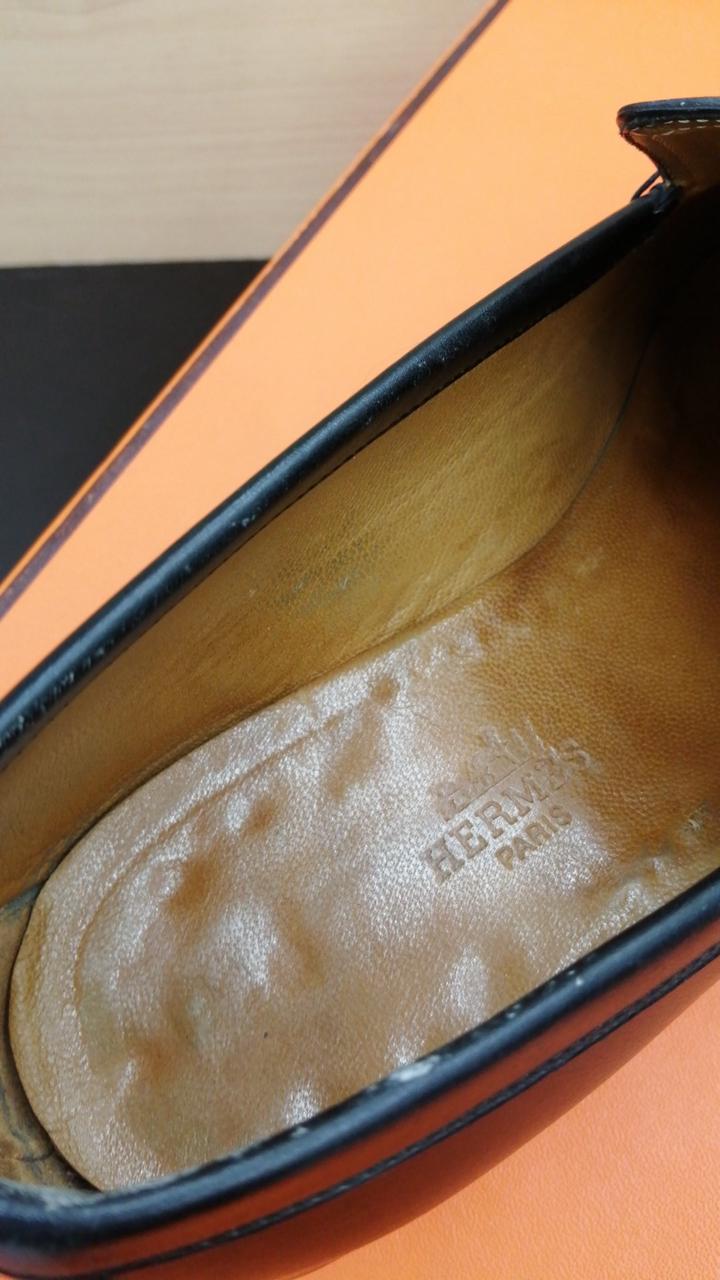 Hロゴ型押しのレザースリッポン/ローファーです。使用感ありますが、ソール摩耗少ない美品です!