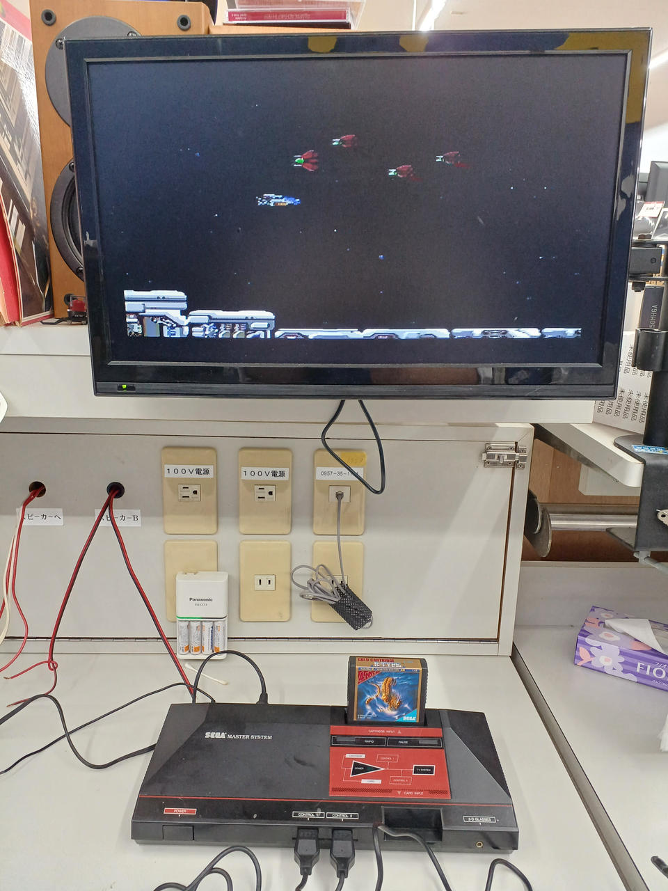 出力確認は店舗備品のメガドライブ用AVケーブルでおこないました。 |