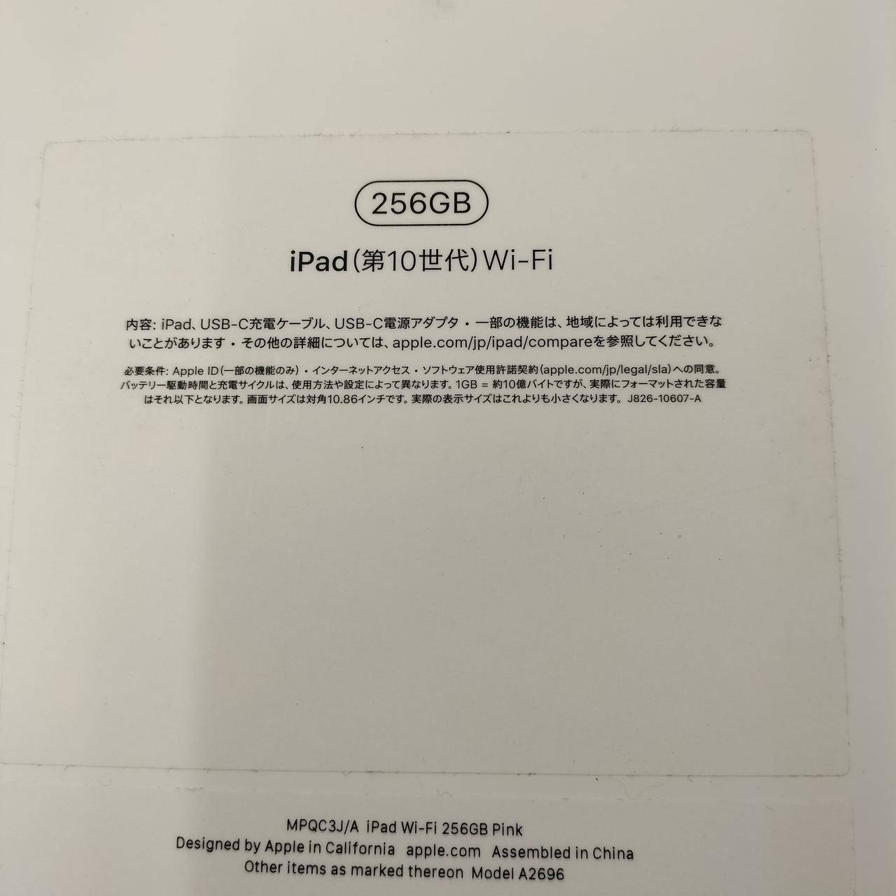 iPad 10.9インチ 第10世代 Wi-Fi 256GB [ピンク] |