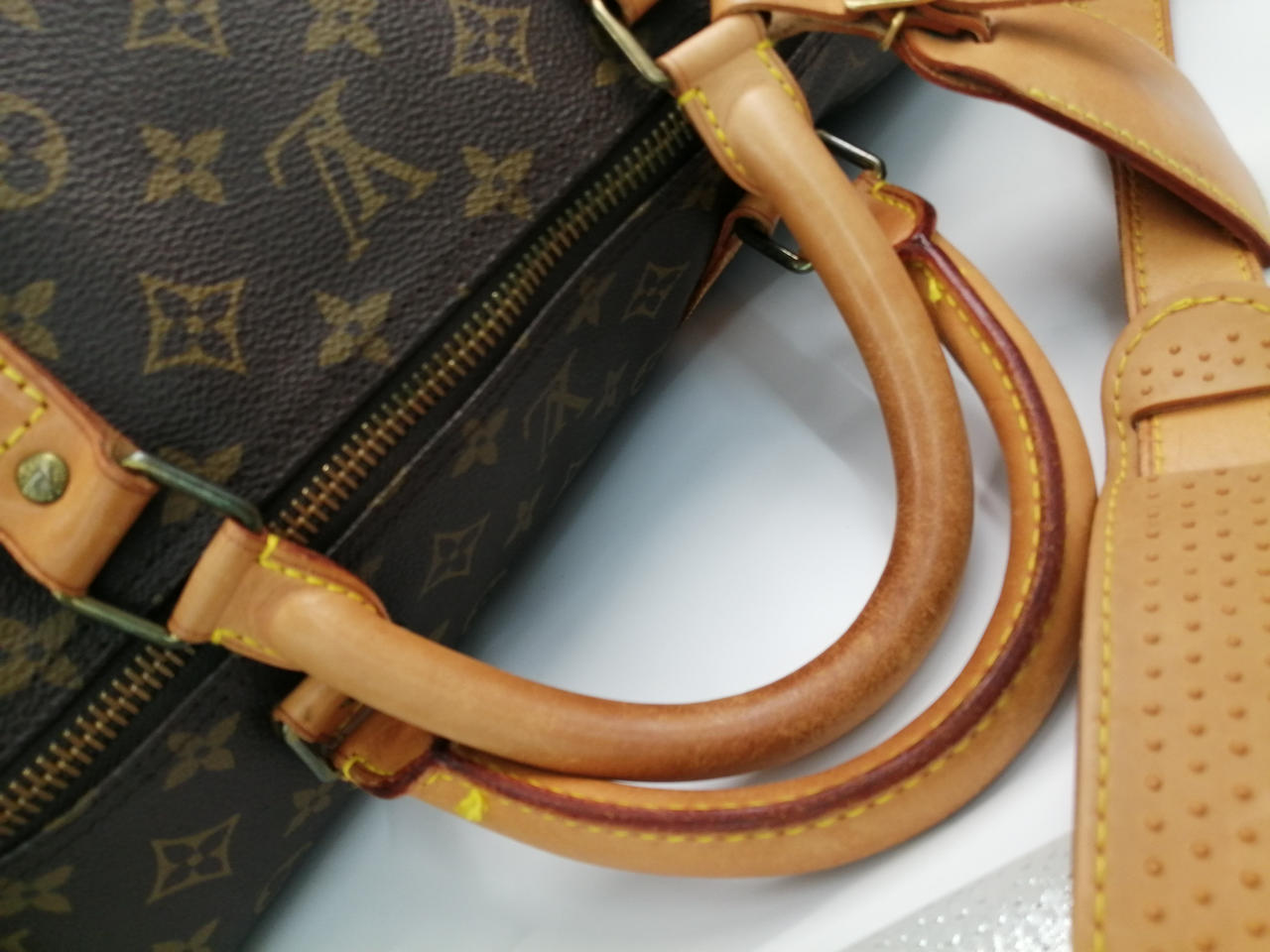 ヌメ革シミ、ヤケ、ひび割れ等あり 金具キズあり 使用感あり |