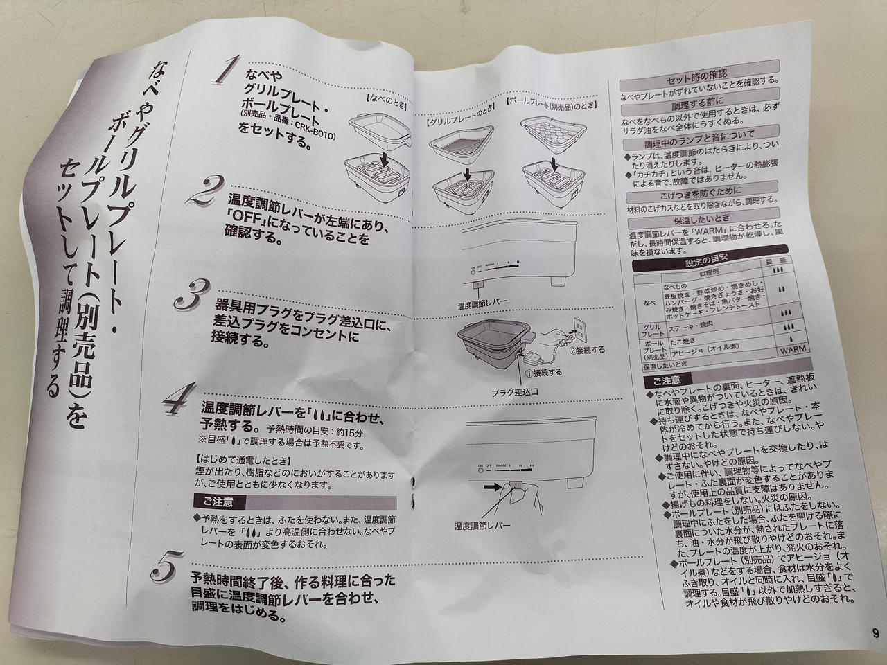 温度調節範囲:保温~250度・消費電力:1200W |
