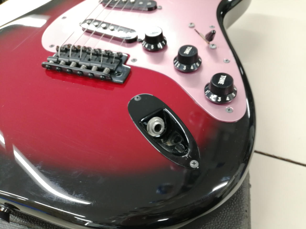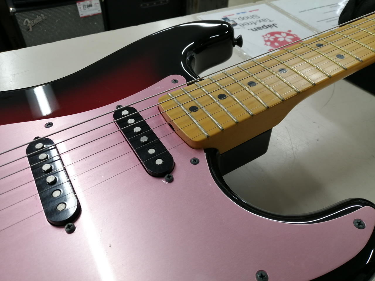 L'Arc~en~CielのギタリストKenのシグネイチャーモデルGalaxy Red。特徴的なカラーにピンクアノダイズドピックガード、ブラックで統一されたパーツ等、本人実機を忠実に再現したモデル。厚めのCシェイプネックが鳴らすガツンと抜けの良いサウンドや、リアにもトーンを効かせることで本人特有のニュアンスを抑えた甘いサウンドなど幅広い音作りが可能です。 |