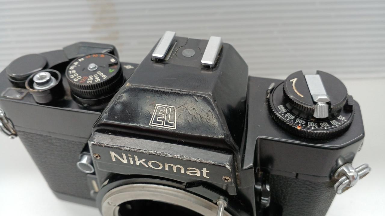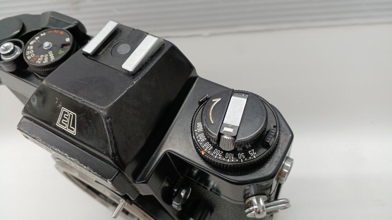 ワインダー装着可能なEL。凹みがありますがシャッターや露出計は動作しました |