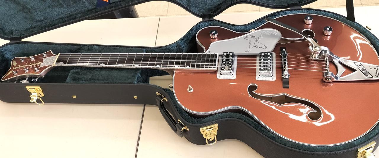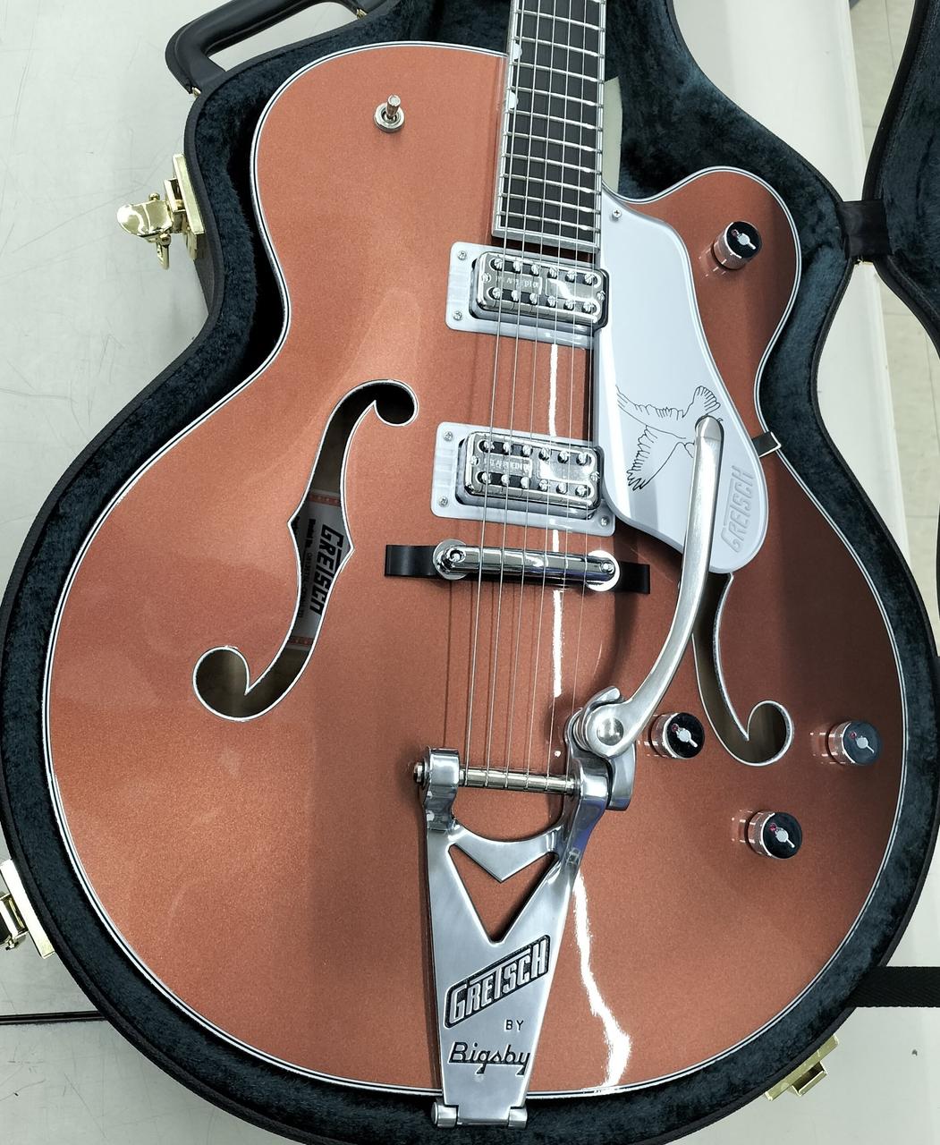 印象的なコッパー/サハラメタリックのツートーンを採用したグレッチ・ファルコン |