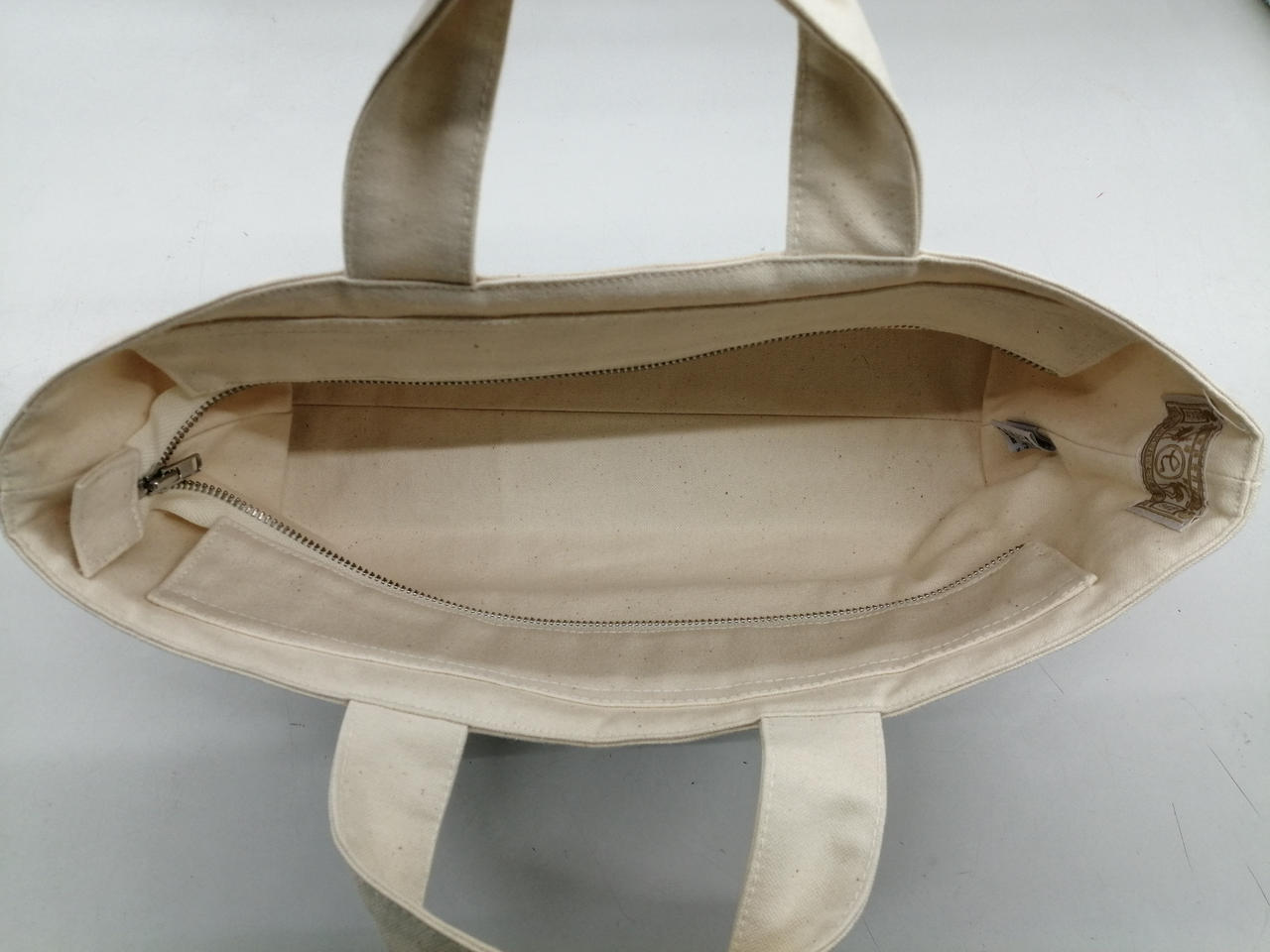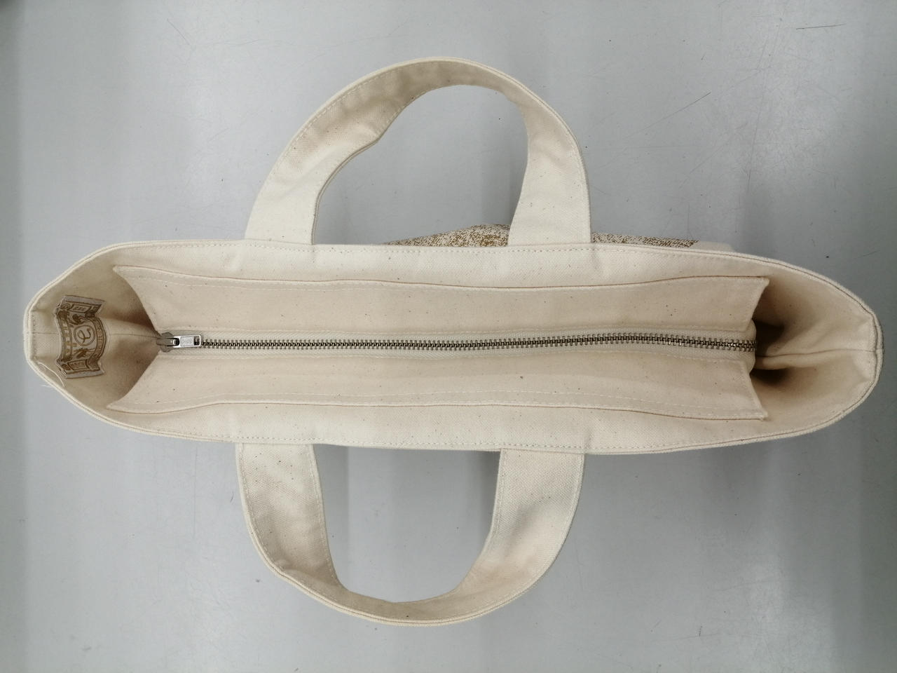 横長の形が新鮮で、マチが大きく浅いつくりなのでバッグの中が見やすく中の物を探し易くなっています。ファスナーが付いているので安心です |