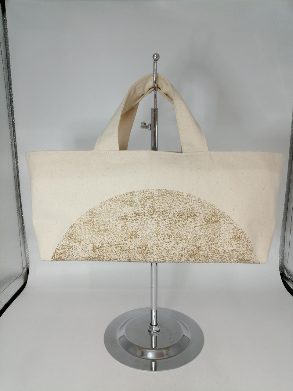 金銀銅の箔を半月のようにあしらったトートバッグ |