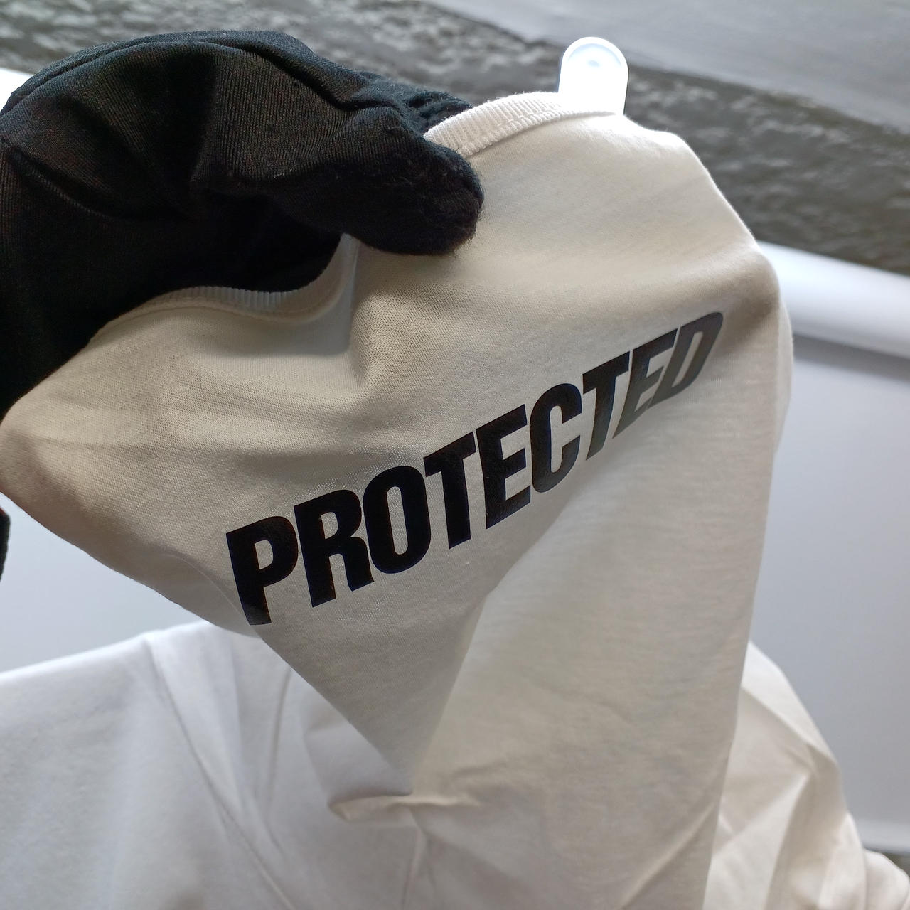 ハイネック部分がマスクのようになっているのが特徴で個性的です