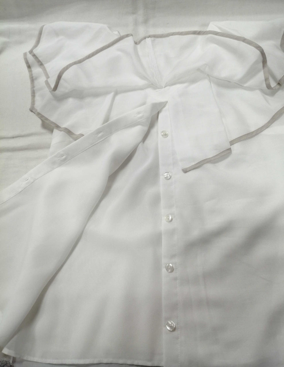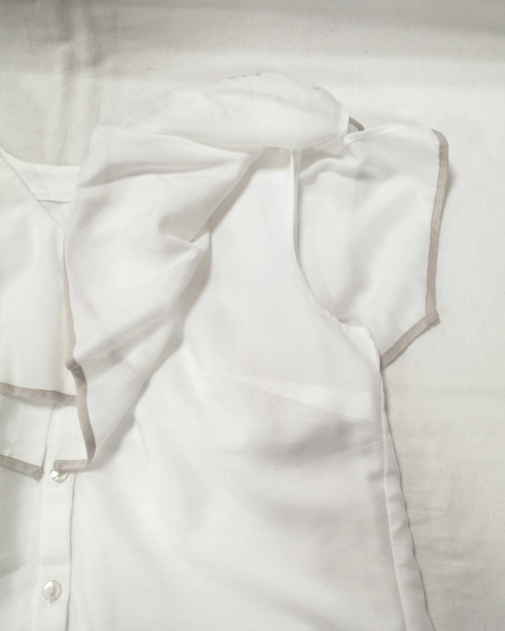 重ねて施されたフリルが胸元にボリューム感と、華やかさをプラスしてくれます! |
