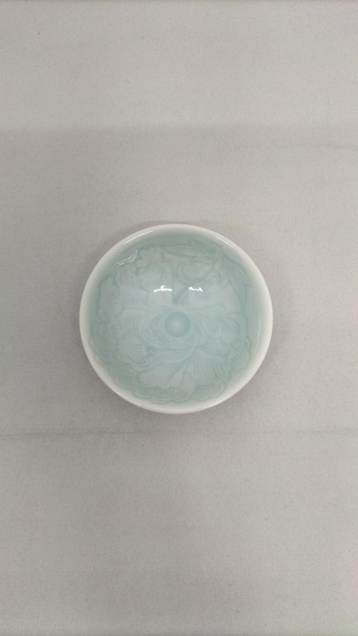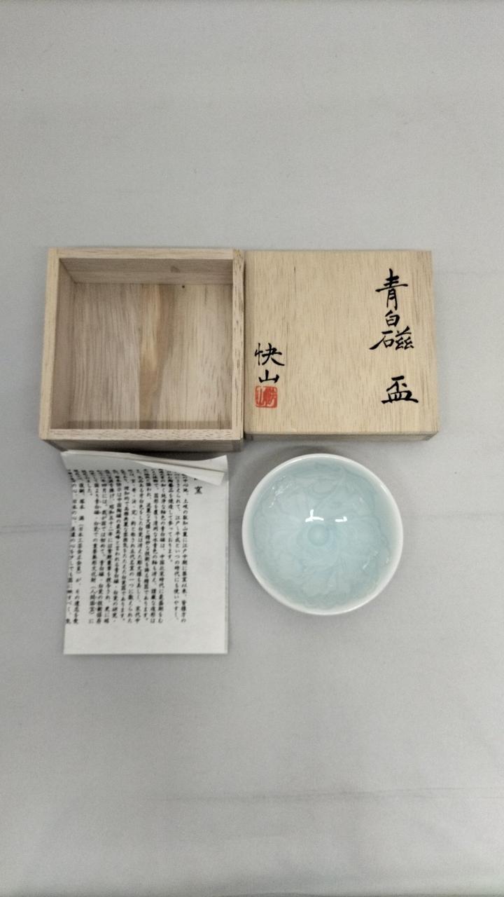 水青色で流麗な文様の一品です。