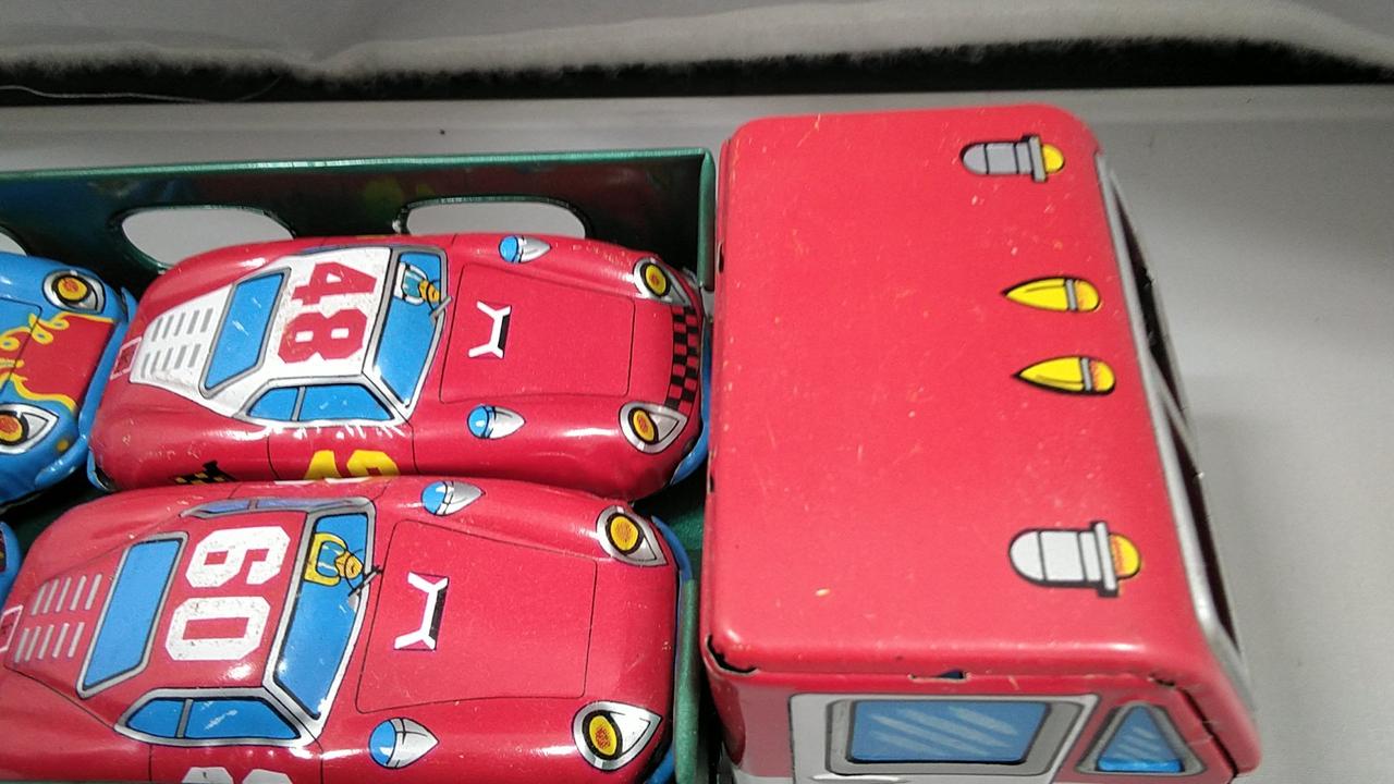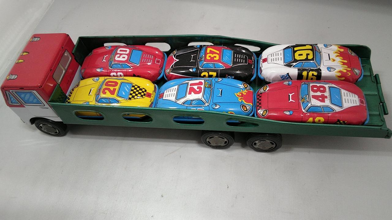 フリクション(手押し走行)で遊べたり、荷台にミニレーシングカーを乗せることができます。