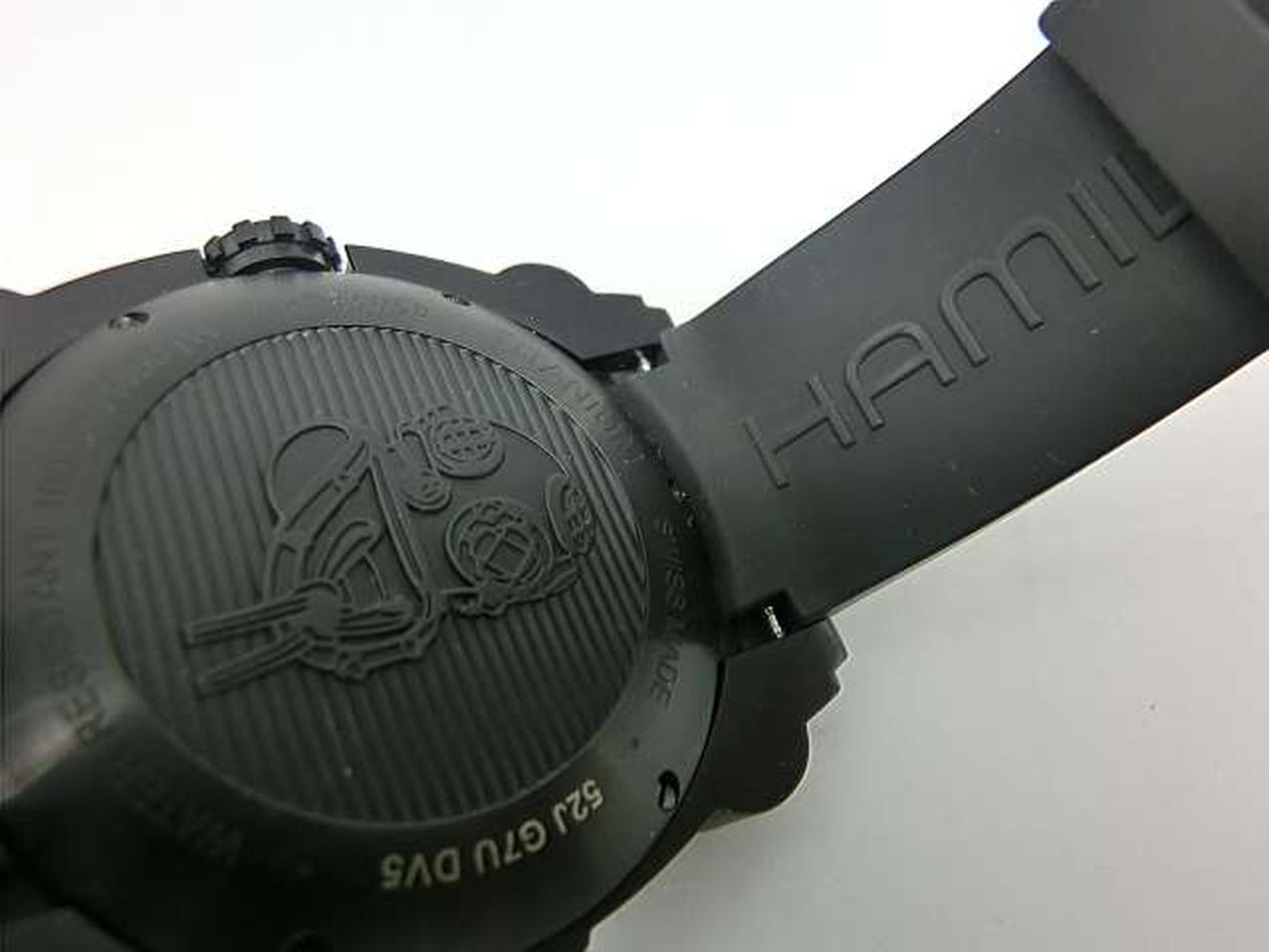 新しいチタンケースを纏った高性能な「カーキ ネイビー ビロウ ゼロ」は、軽量で優れた耐久性を実現。潜水艦にインスパイアされたこのモデルは、1000m防水機能とヘリウムエスケープバルブを搭載。ブラックPVDが施された大胆な46mmのチタンケースは、ステルススタイルそのものです。ケースバックにあしらわれたエンボス加工のダイビングマスクが 深海への冒険心を掻き立てます。 |