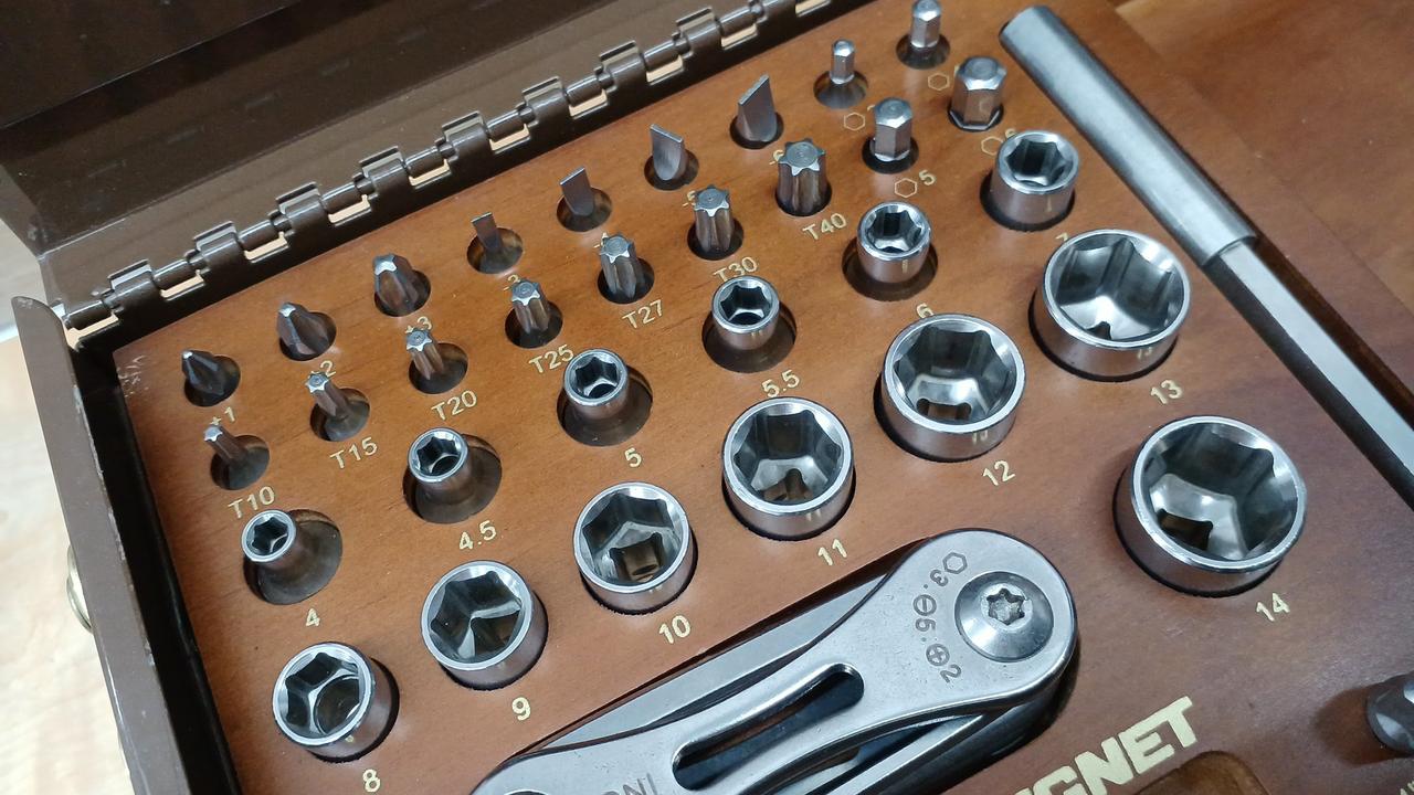 外はすべて軽量のステンレス製、トップトレーは木製トレー |