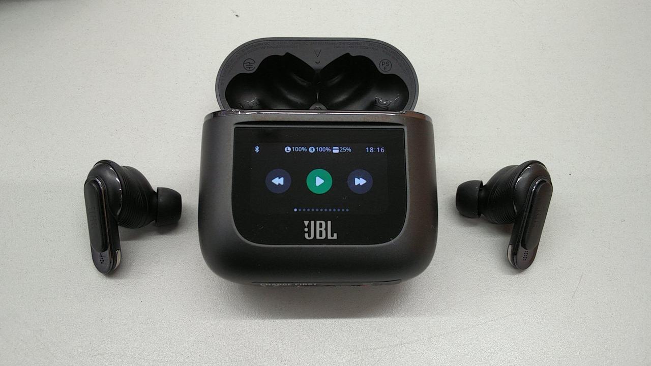 ケースにディスプレイ搭載でバッテリー容量、音量などの確認が可能 |