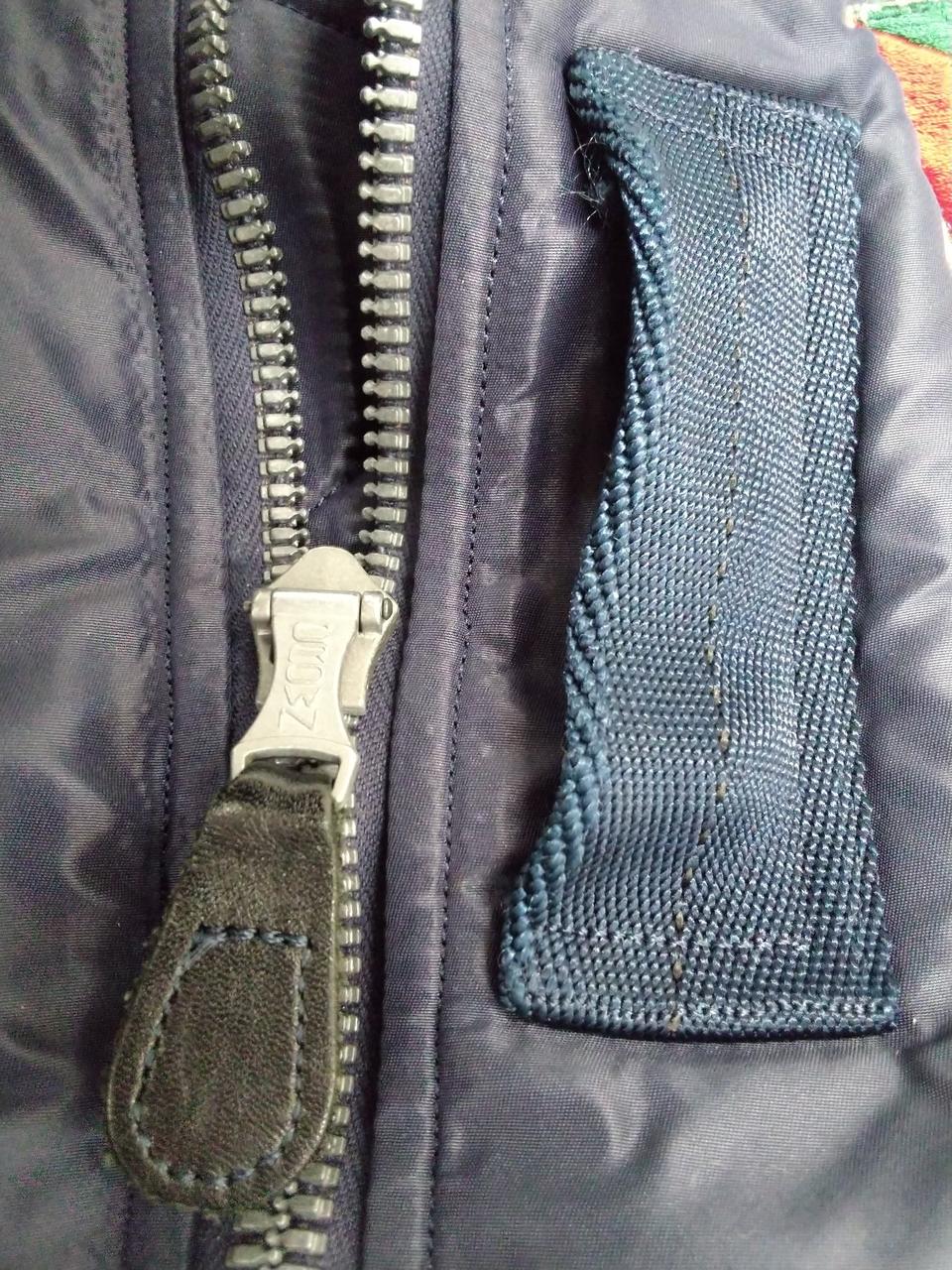 生地のフェード感、各リブ毛玉あり。写真の白いステッチ部は修繕跡と予想されます。縫製はしっかりされているので、着用に問題はありません。 |