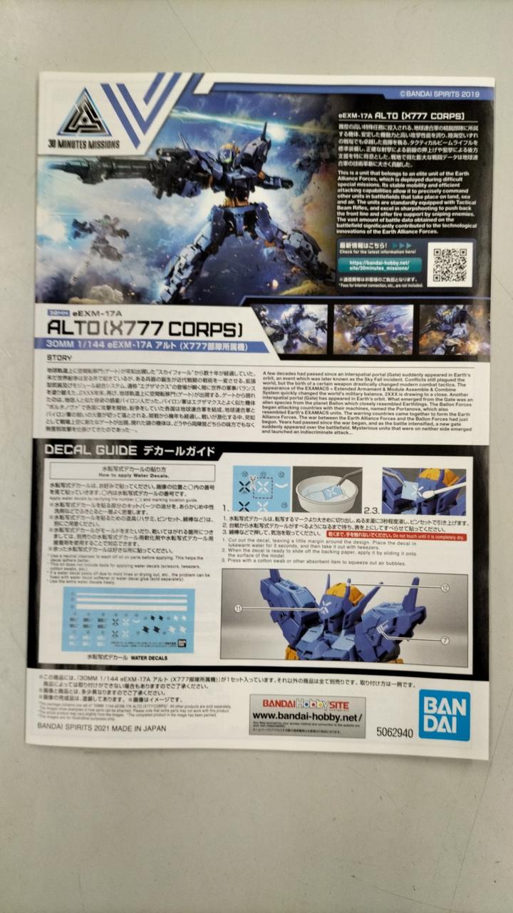 1/144 eEXM-17A アルト(X777部隊所属機) 「30 MINUTES MISSIONS ANOTHER EXAMACS PLAN」 [5062940] |