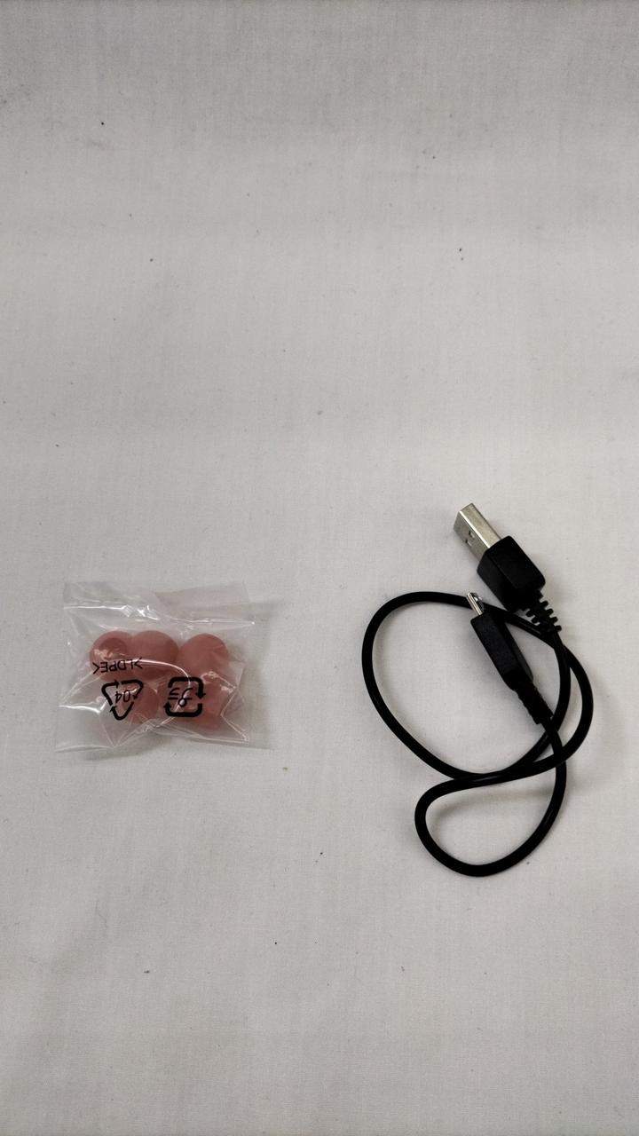 箱(表面にヘコみあり)、接続ケーブル、取扱説明書、イヤーピース付属。 |