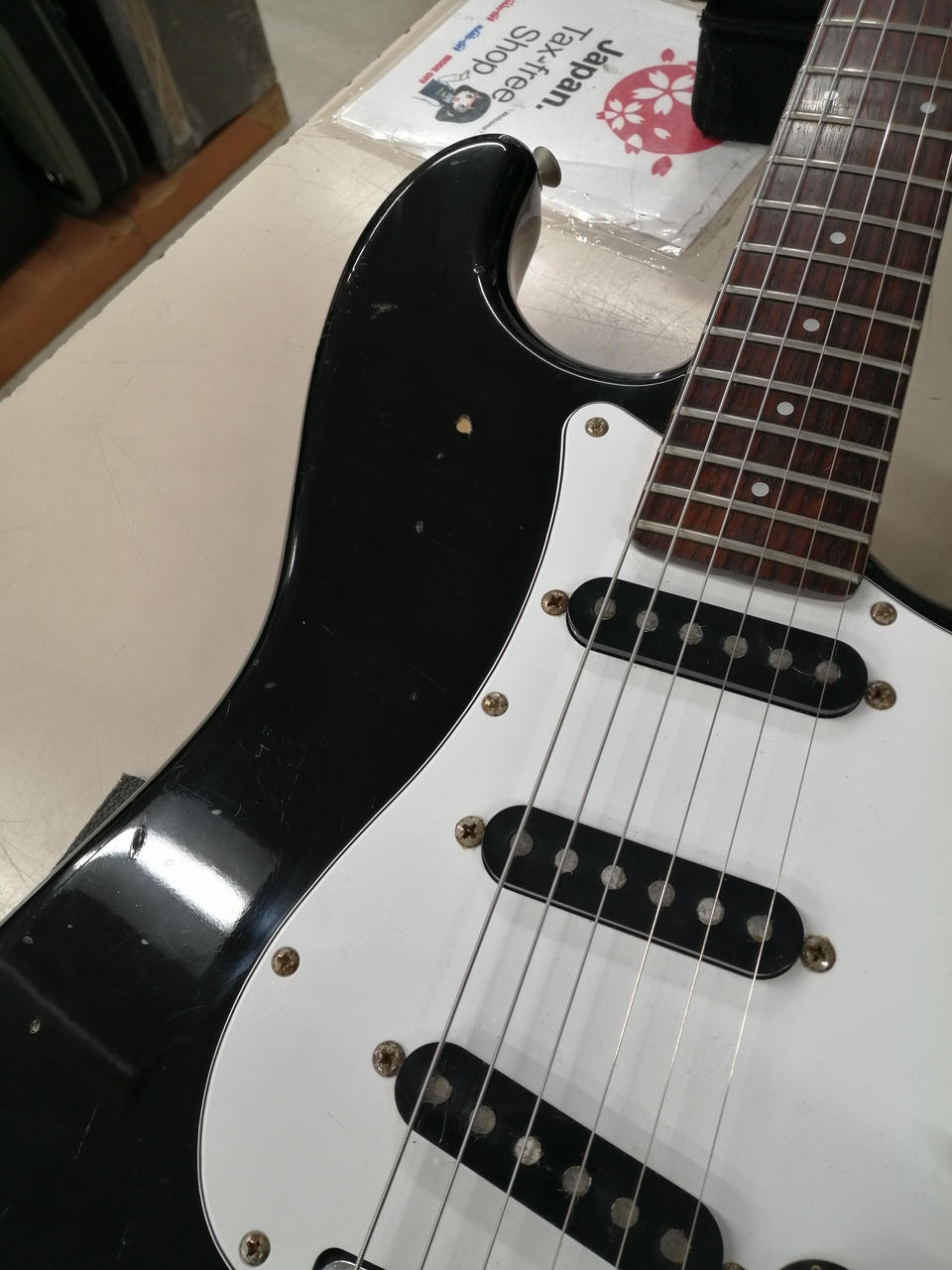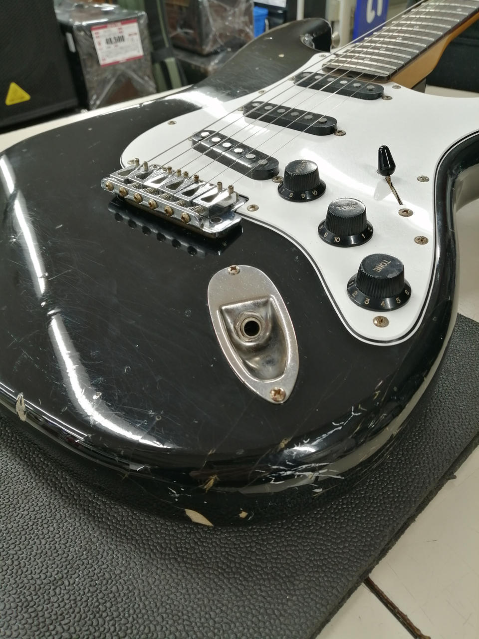 SQUIER、JVシリアルのストラトキャスターです。全体的にサビや汚れが見られますが、しっかり音でました。ガリ少ないです。 |