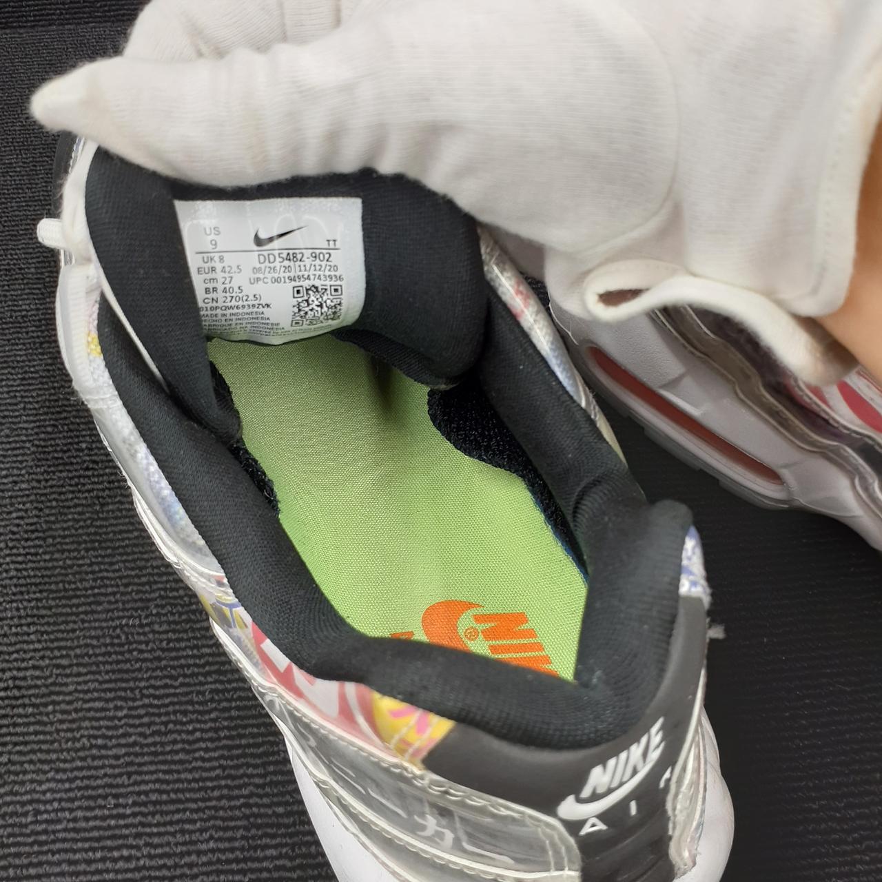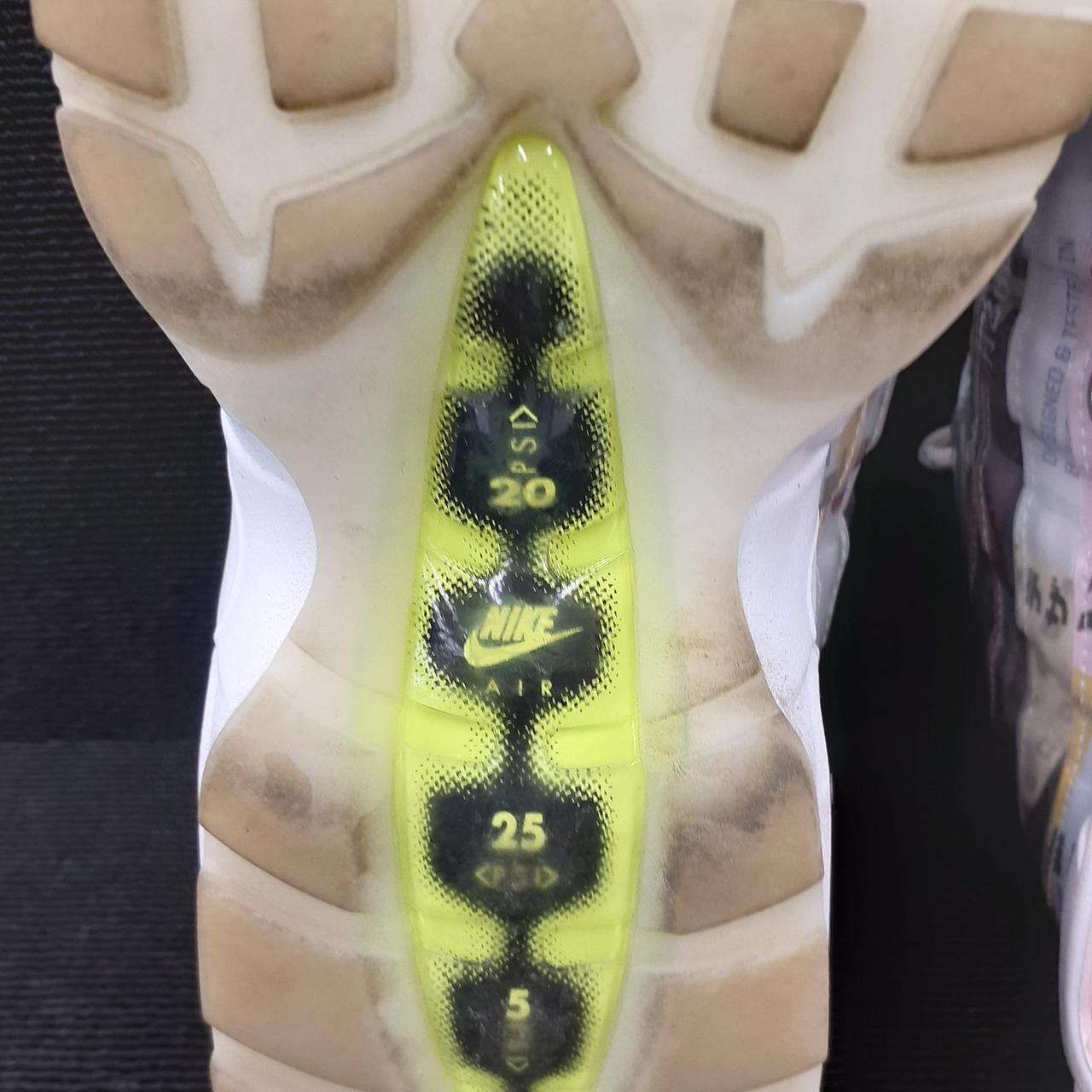 初動定価 18,700円 ミッドソールにはスペックルを飛ばし、ビジブルエアユニット内部はネオンカラーでアクセント。現在のスニーカーブームの原点、90年代のトレンドを巧みに取り入れつつ、目を引くグラフィカルな装いです。