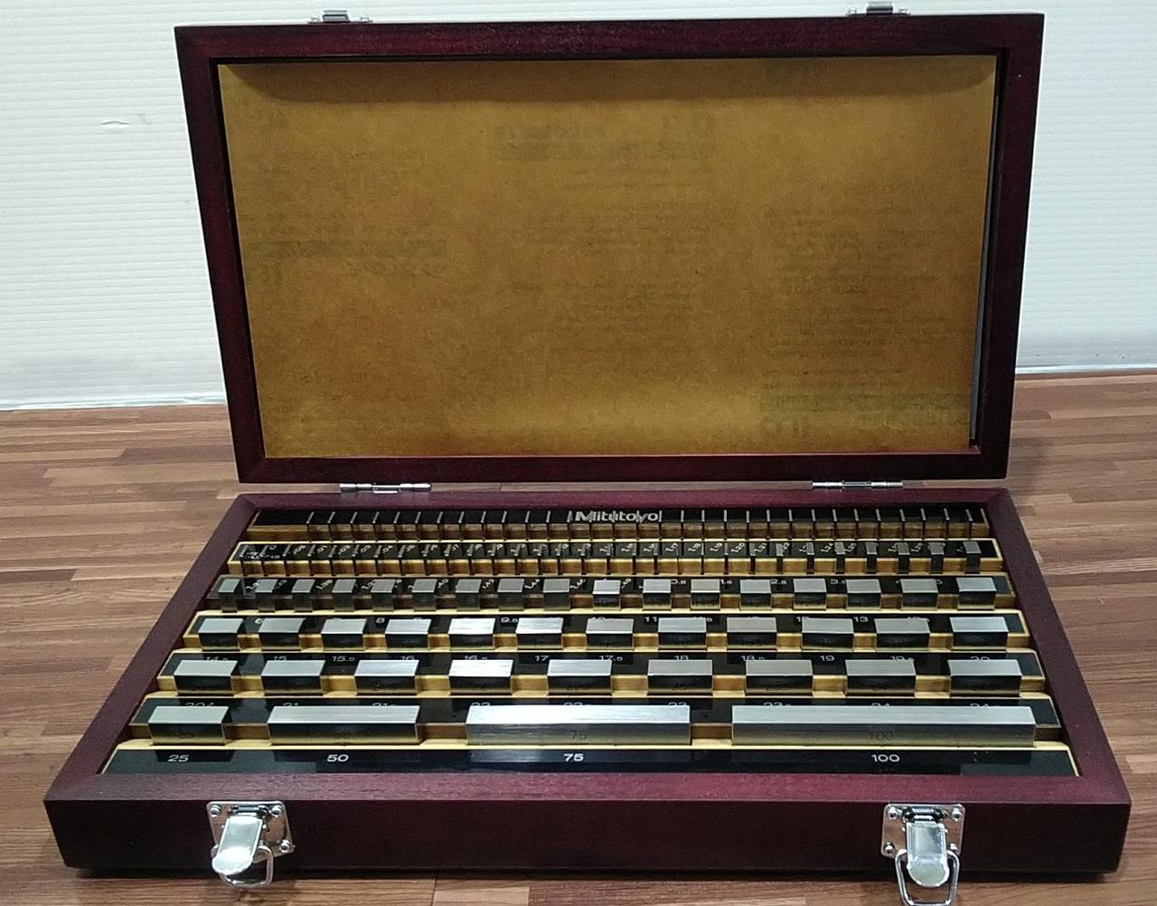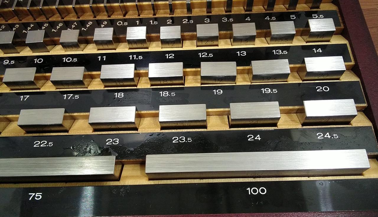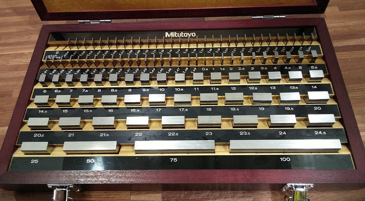 セット内容:(mm)1.005×1個、1.01~1.49(0.01刻み)×49個、0.5~24.5(0.5刻み)×49個、25~100(25刻み)×4個 |