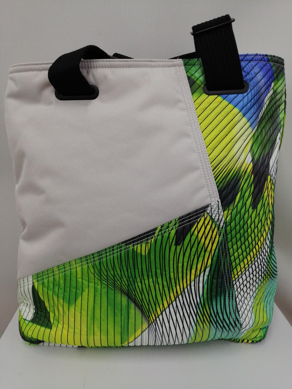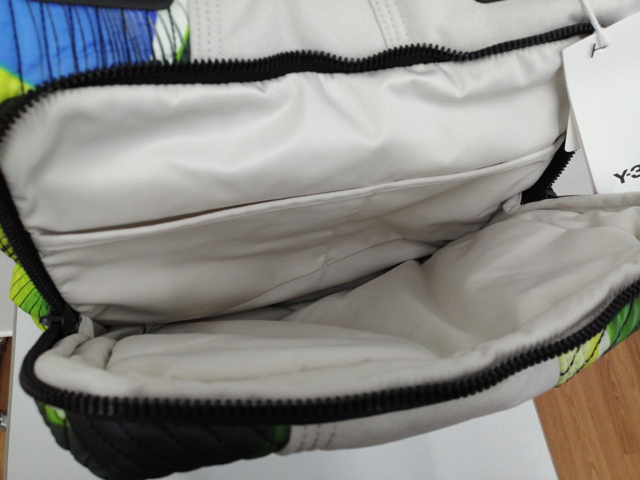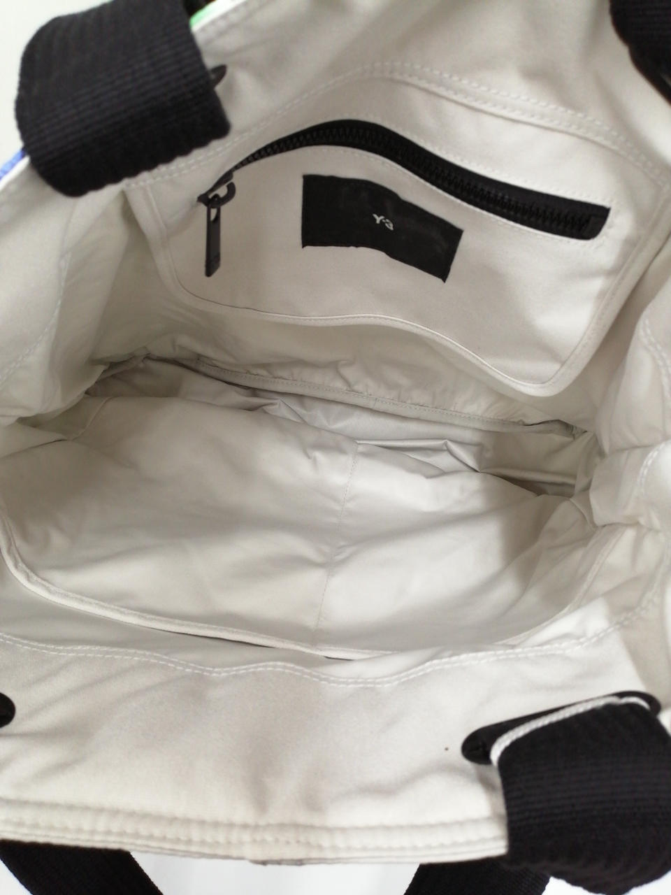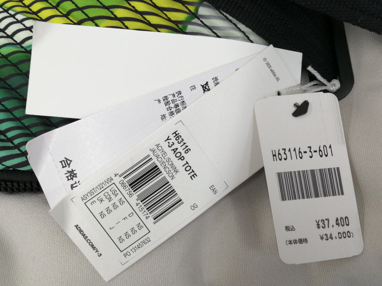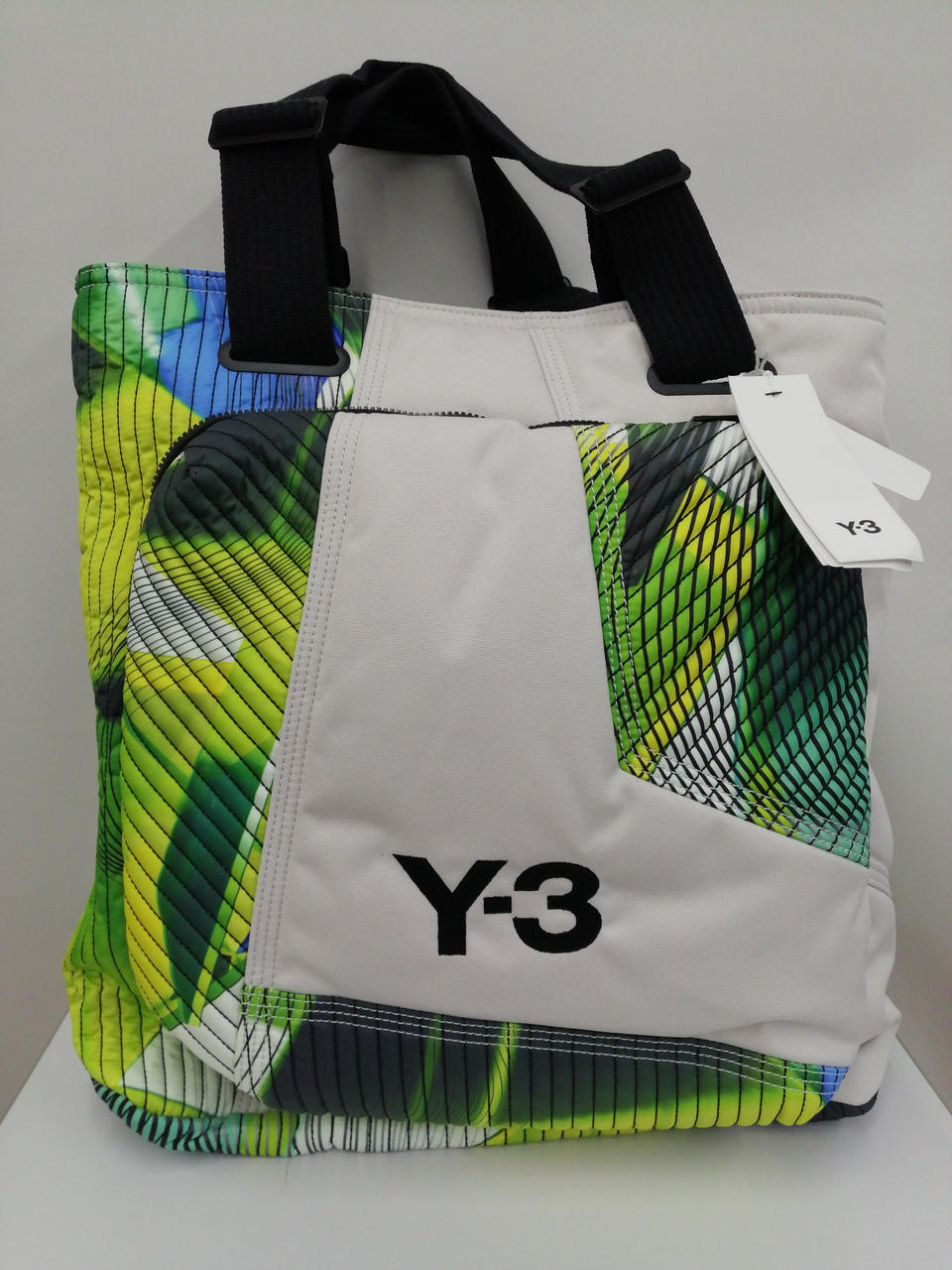 パラシュートからインスピレーションを得た大胆なグラフィックの「Y-3 AOP TOTE」。