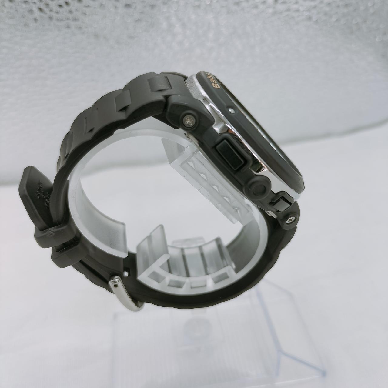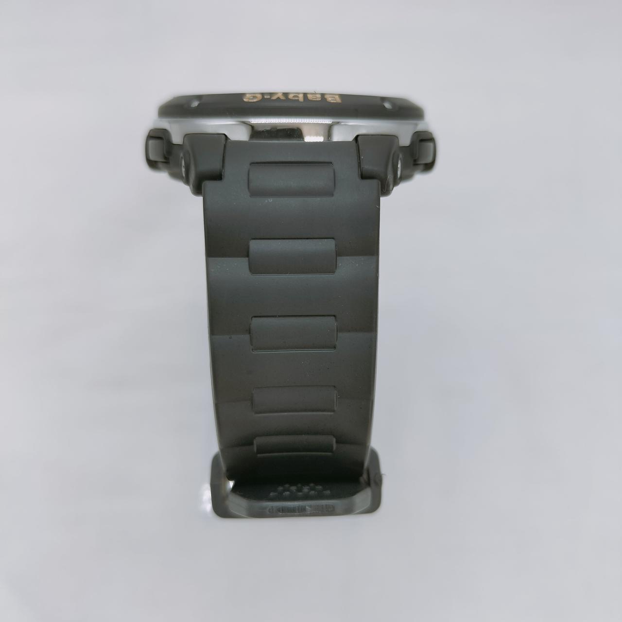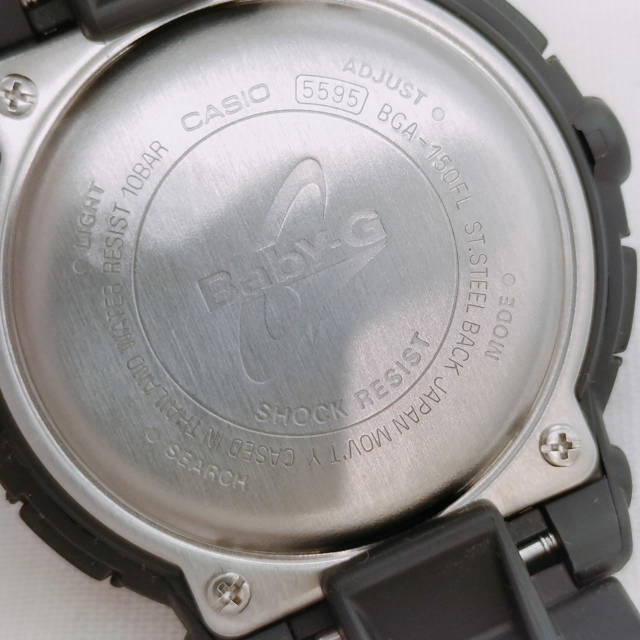 ブラックのベースにシックなフラワー柄の文字盤が華やかなベイビーGの腕時計です。