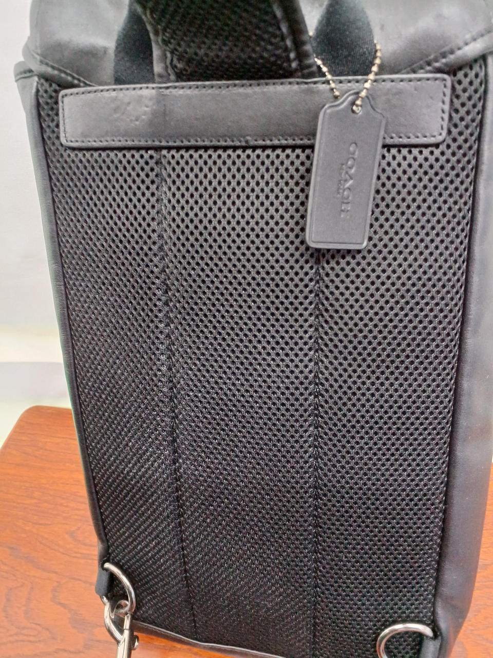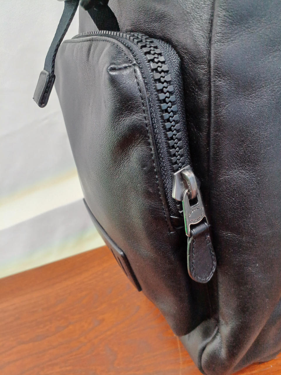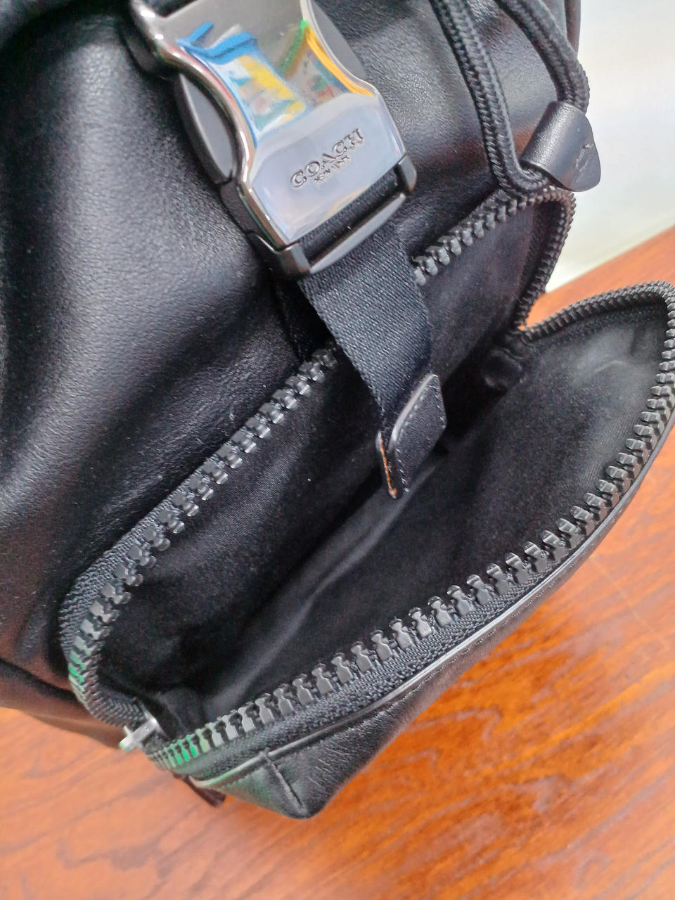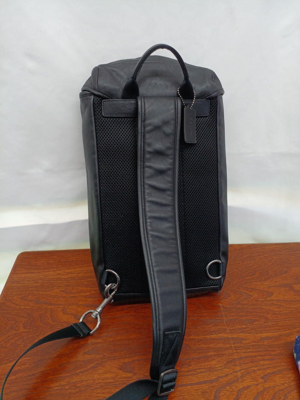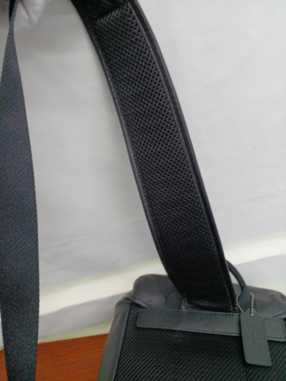 左右どちらにも付け替えできるレザーの斜め掛けバッグ。 |