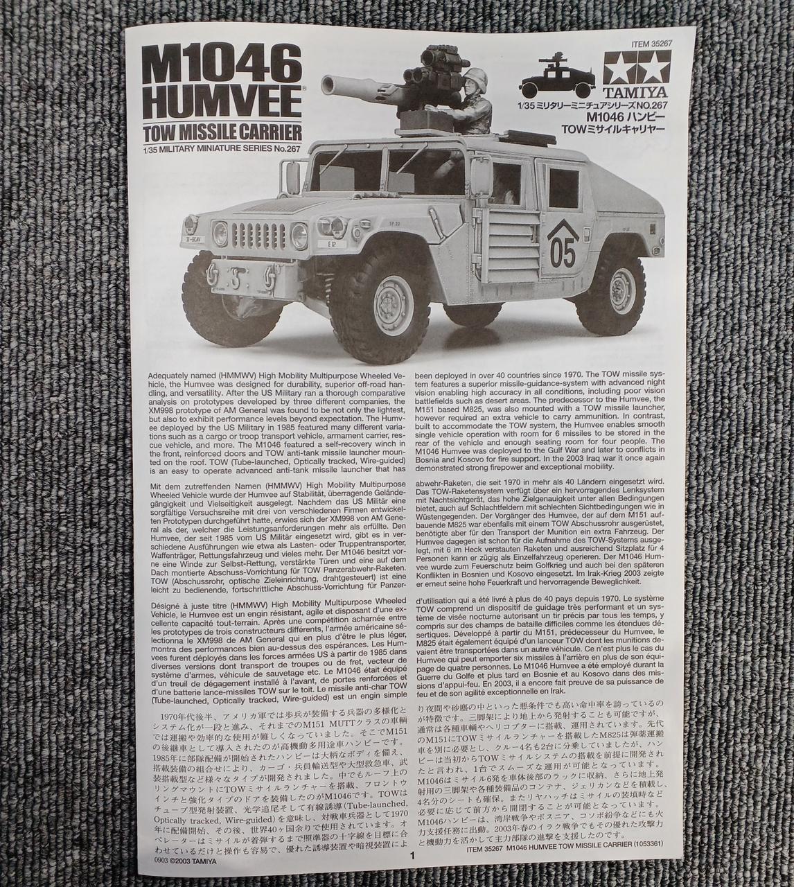 型番:M1046ハンビー TOWミサイルキャリヤー