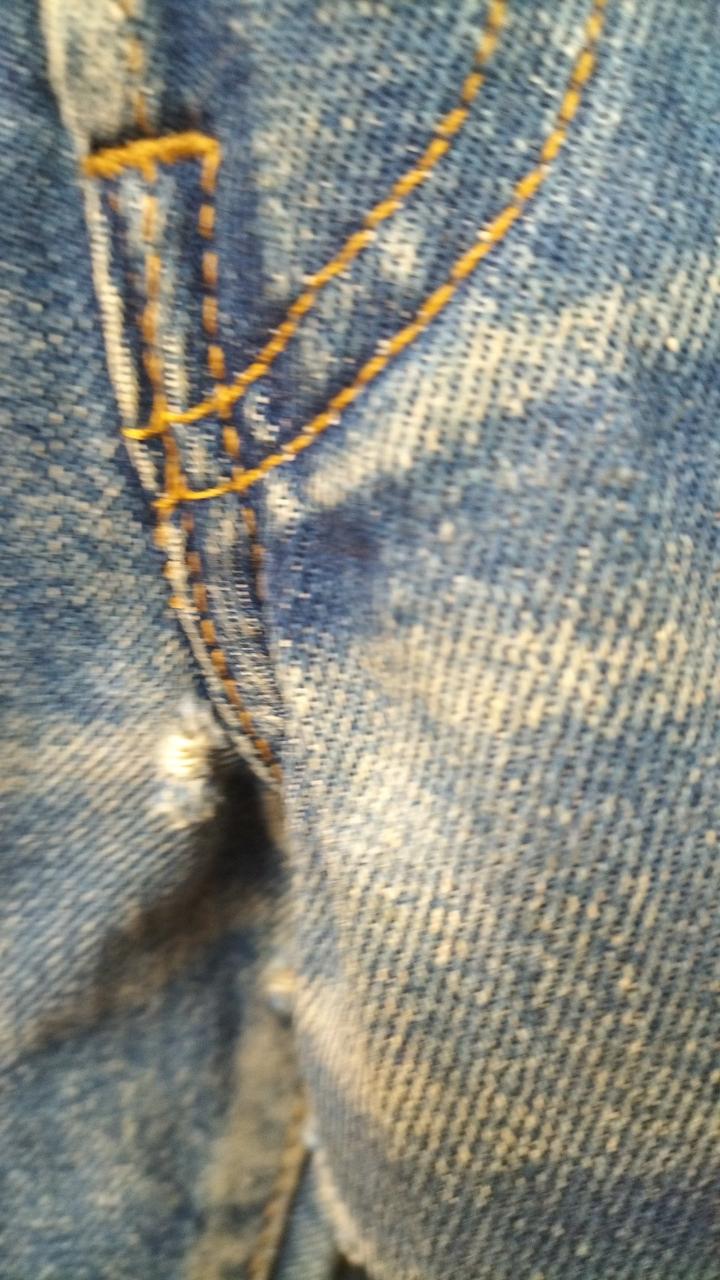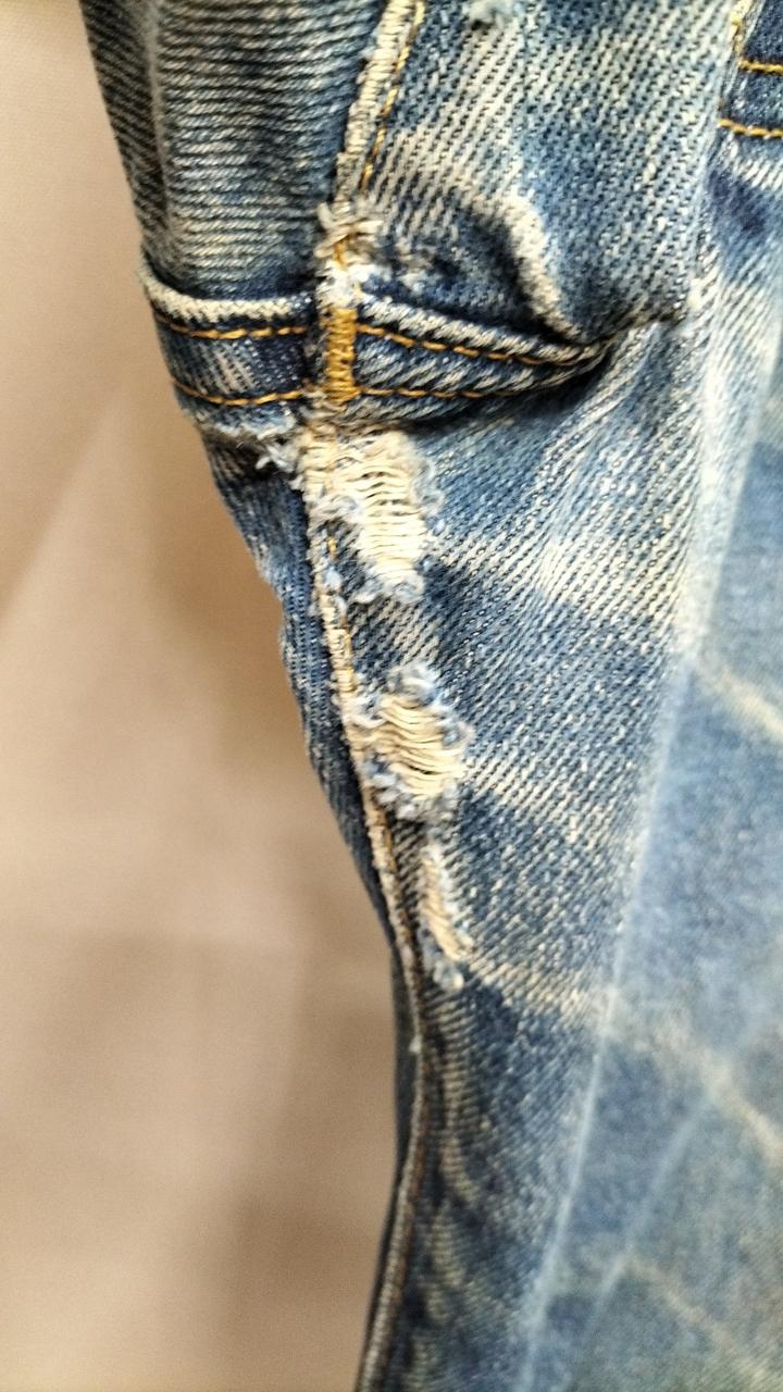 全体的に使用感があり、股のあたりと裾にダメージがあります。 |