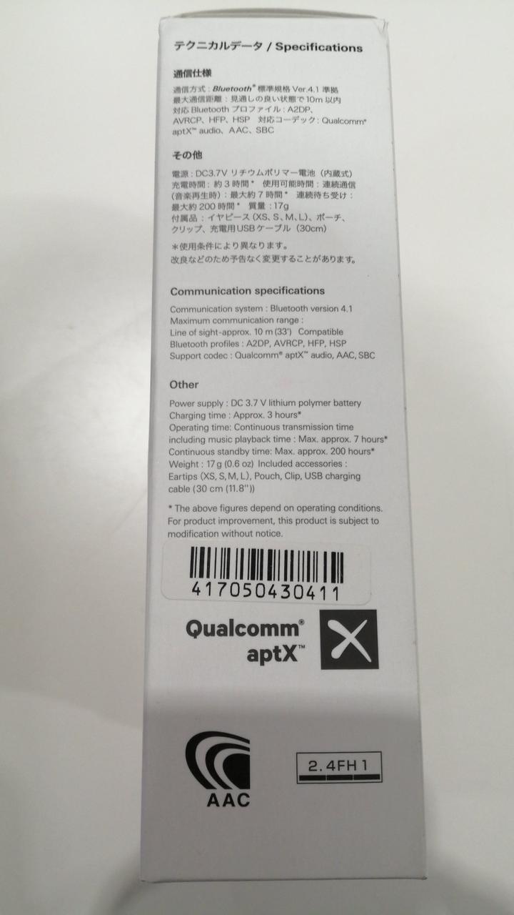 USB ケーブル/取り替え用イヤーピース/取扱説明/化粧箱