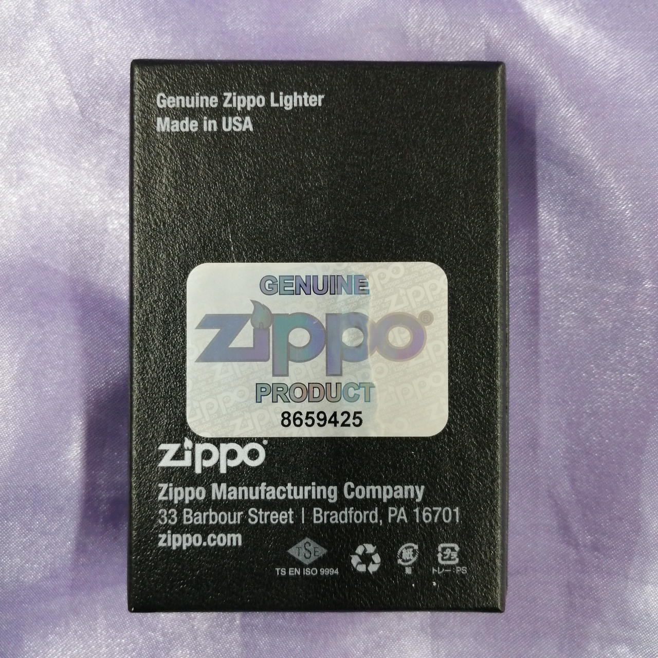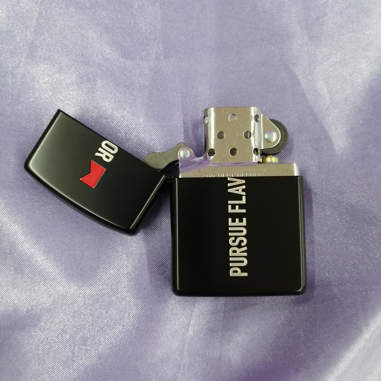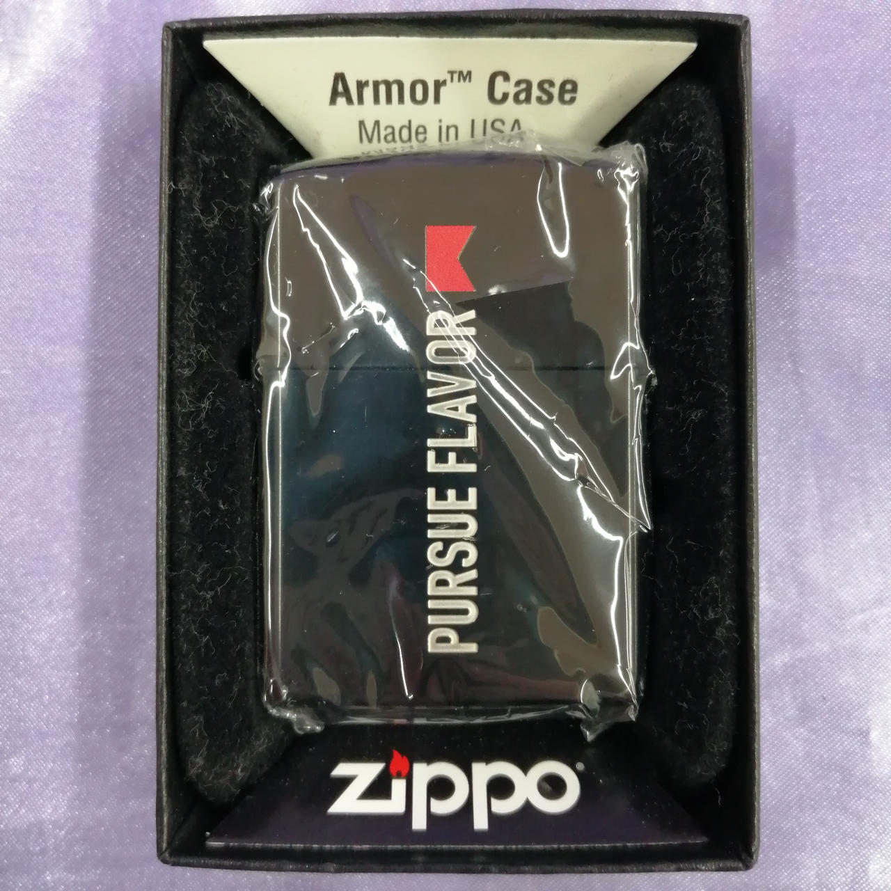 Marlboro Zippo 日本上陸50周年記念モデル 「Pursue Flavor 」デザイン。裏面には50個限定を表すナンバリング入り。(32/50) |