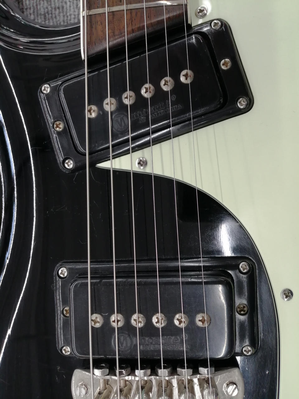 ネック接合部に塗装クラックあり。各部打痕、すり傷あり。 |