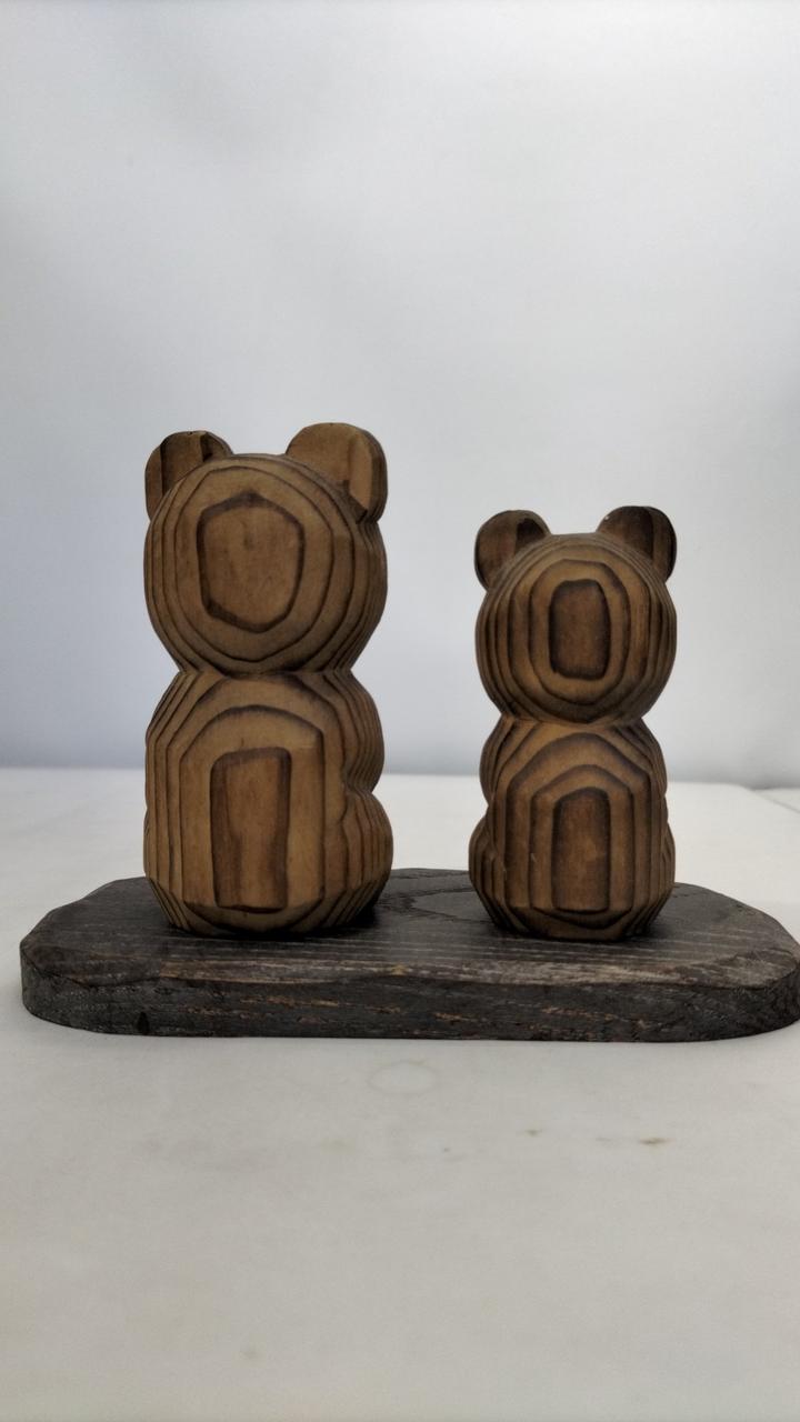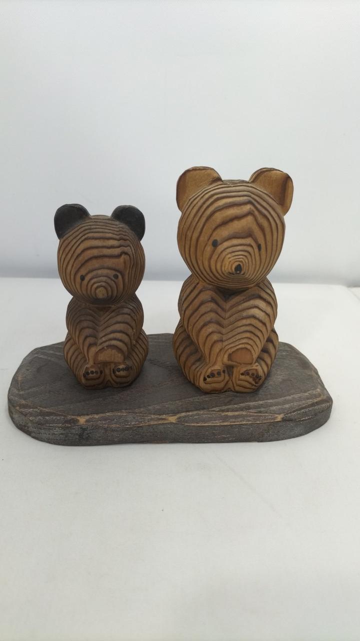 木彫りの熊さん2体セットの台付きです。