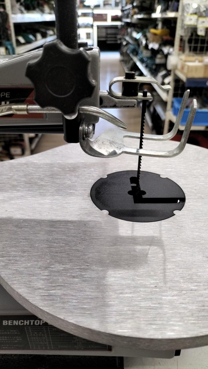 振動や騒音が少ない設計で木工の細かい曲線切断、細工切断に最適ですテーブルが45度傾斜するため、斜めの切断もできます |
