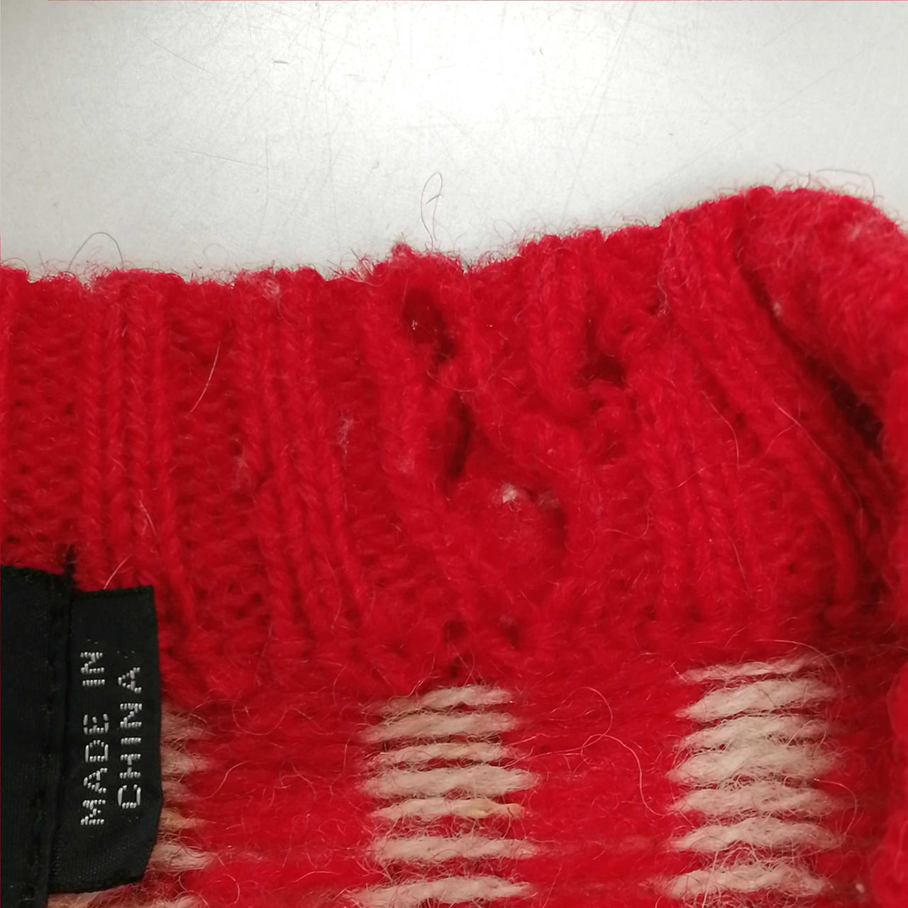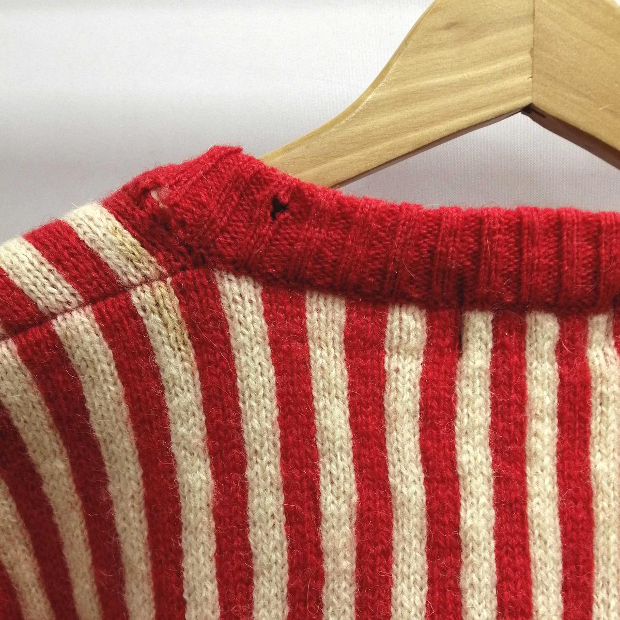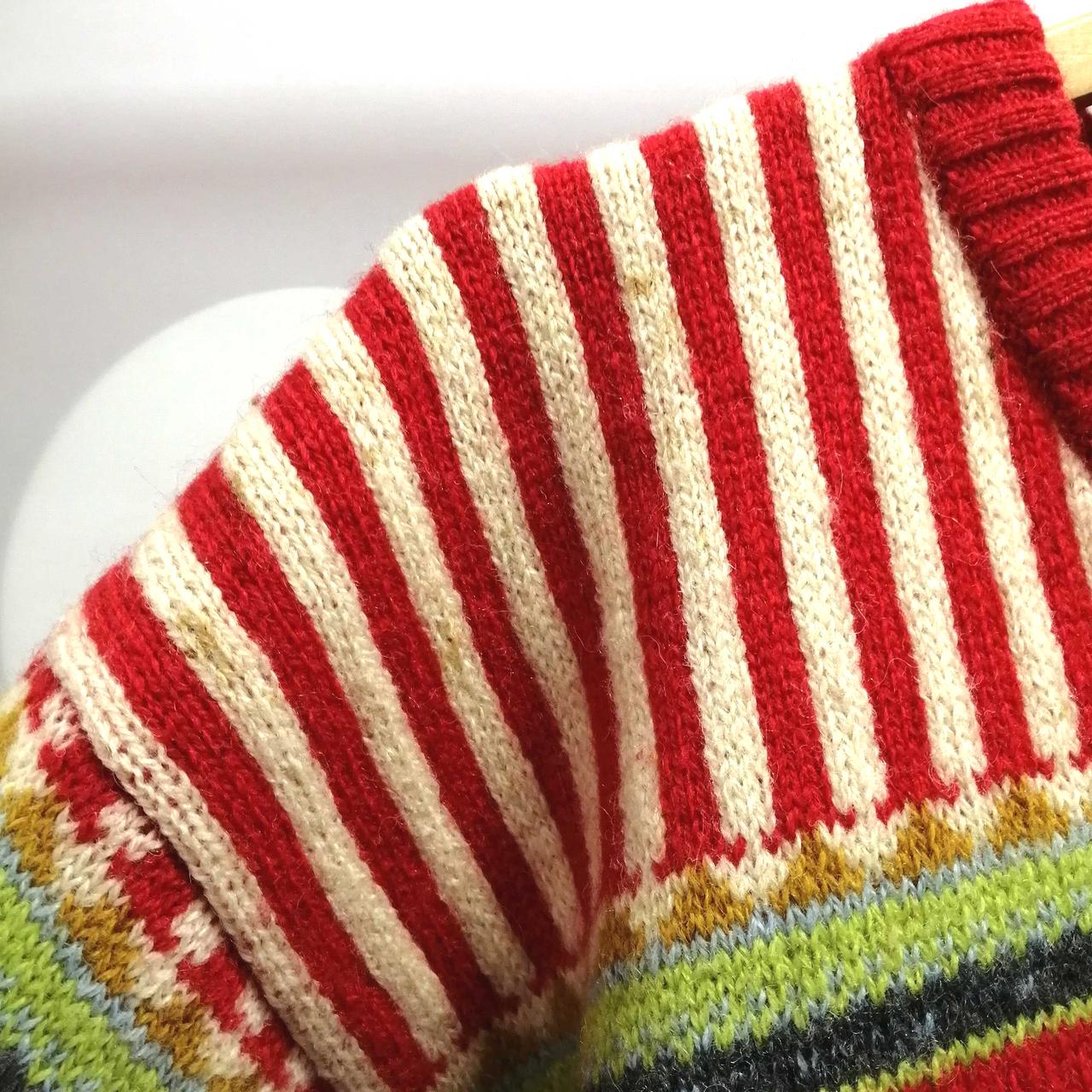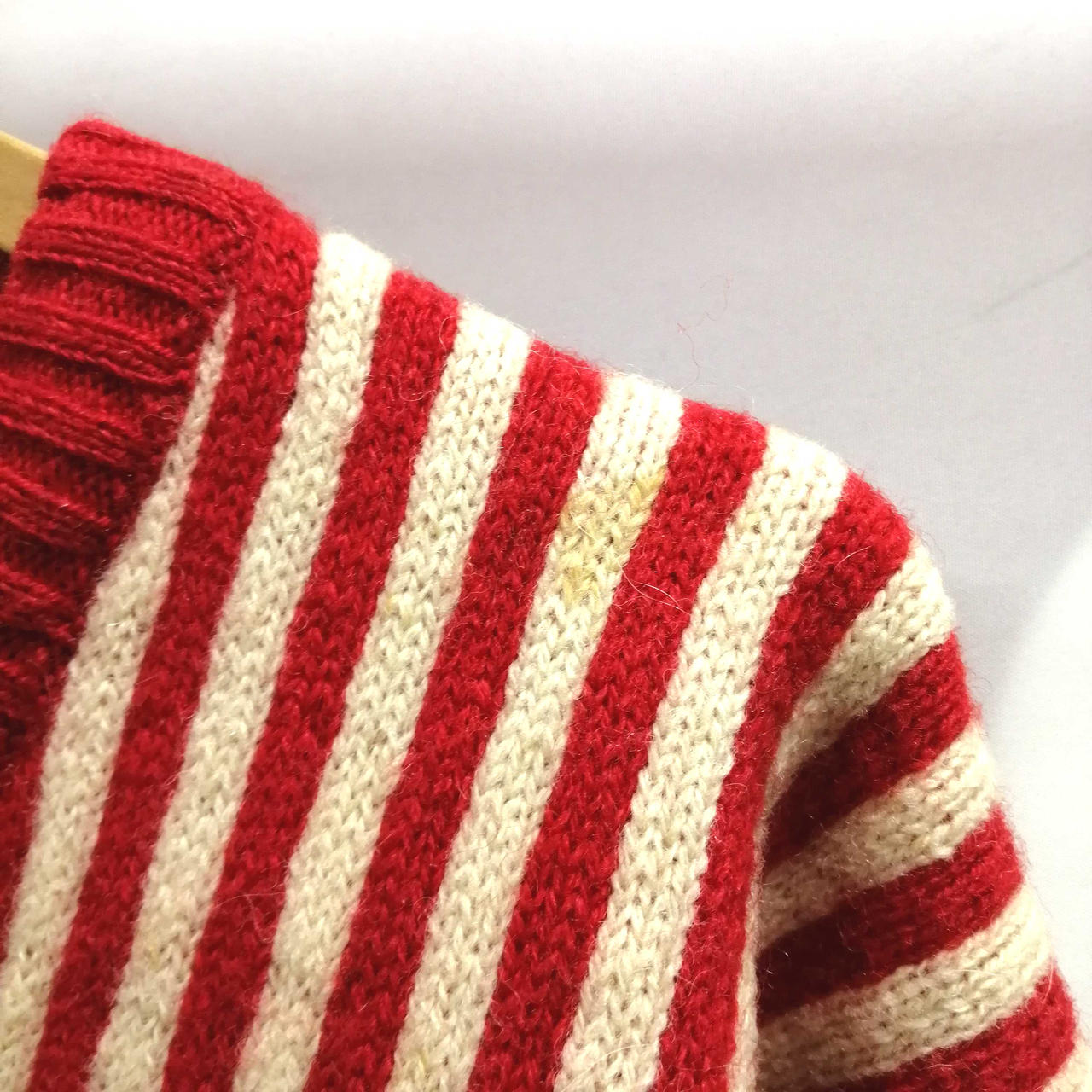 イクシーズのVネック総柄ニット・セーターです。肩部分を中心にシミがございます。首元・後ろ裾部分に穴がございます。 |