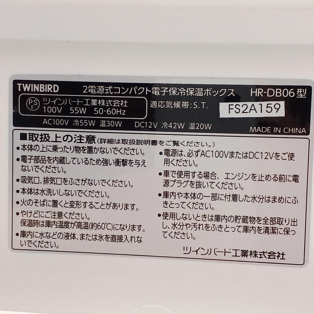 ツインバード/冷保温ボックス/車用/冷蔵庫/保温庫 |
