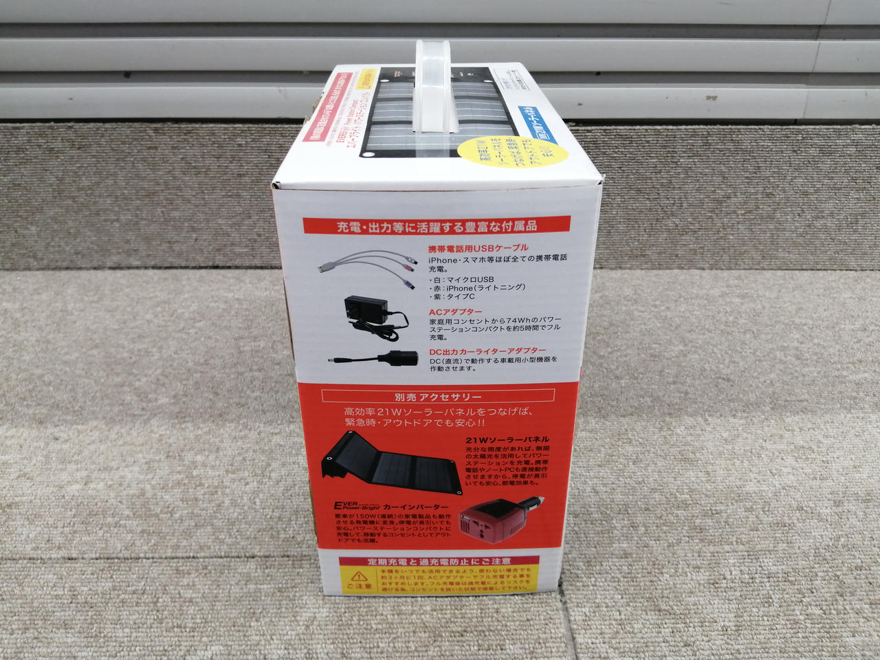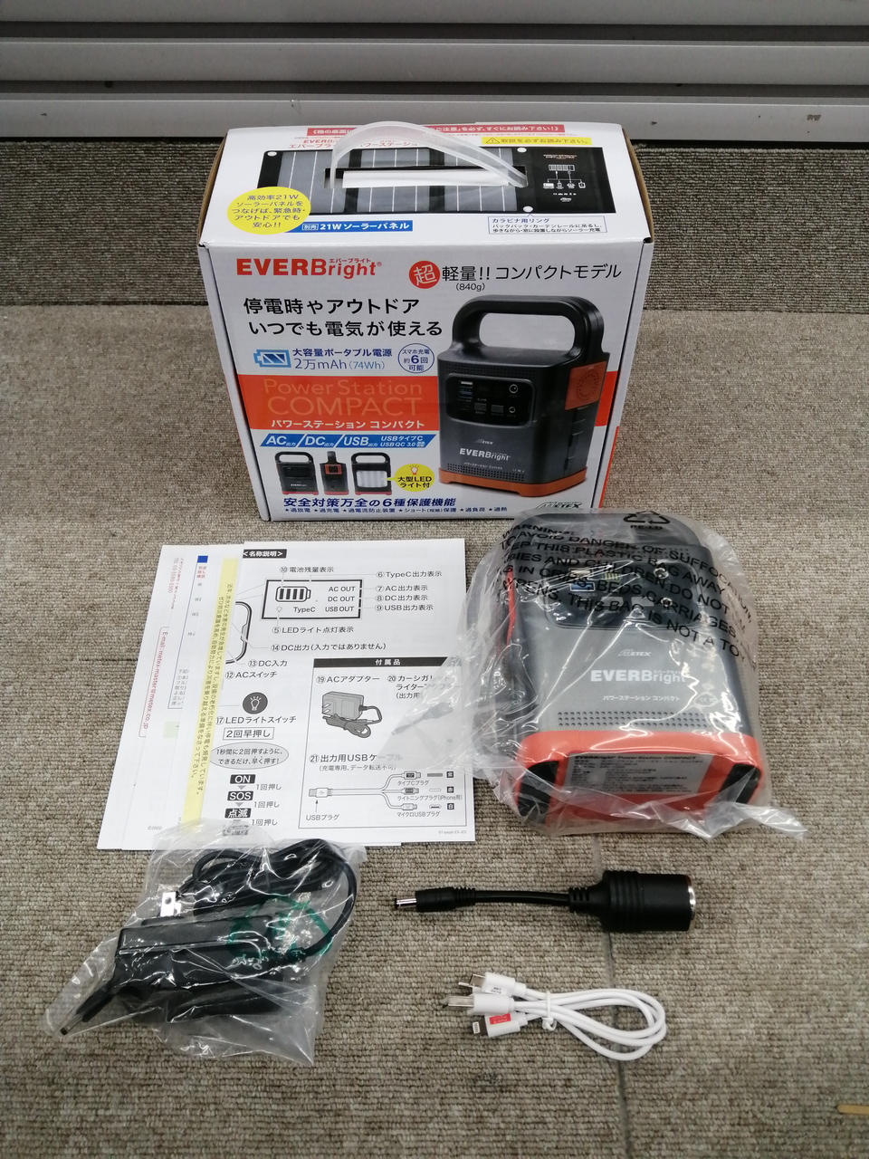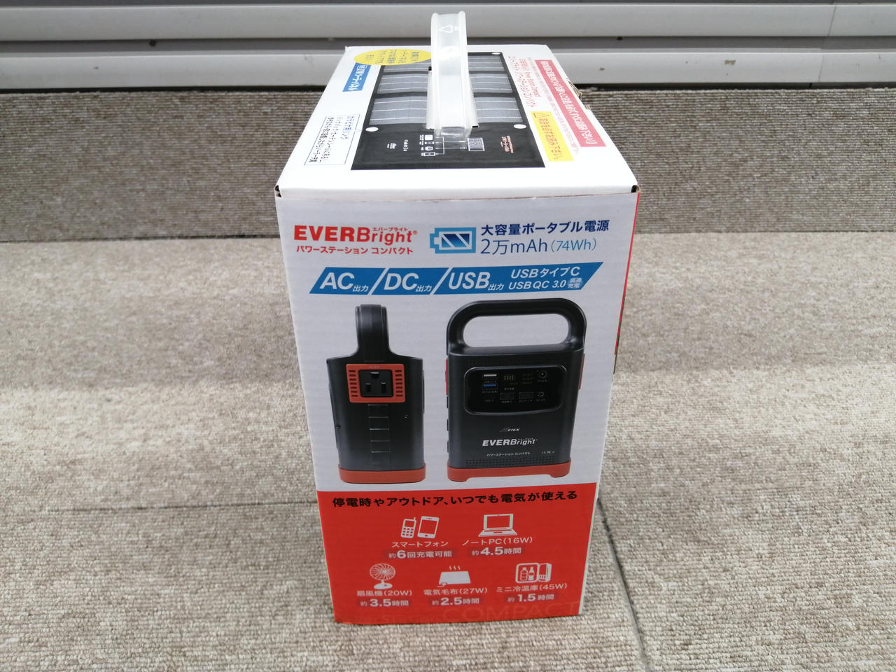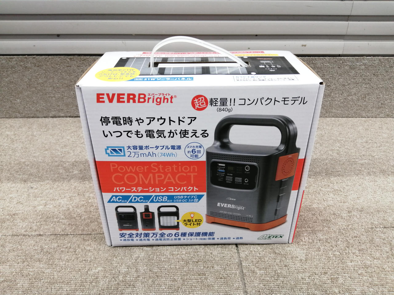 容量20000MAH スマホ6回充電可能。大型LEDライト付き |