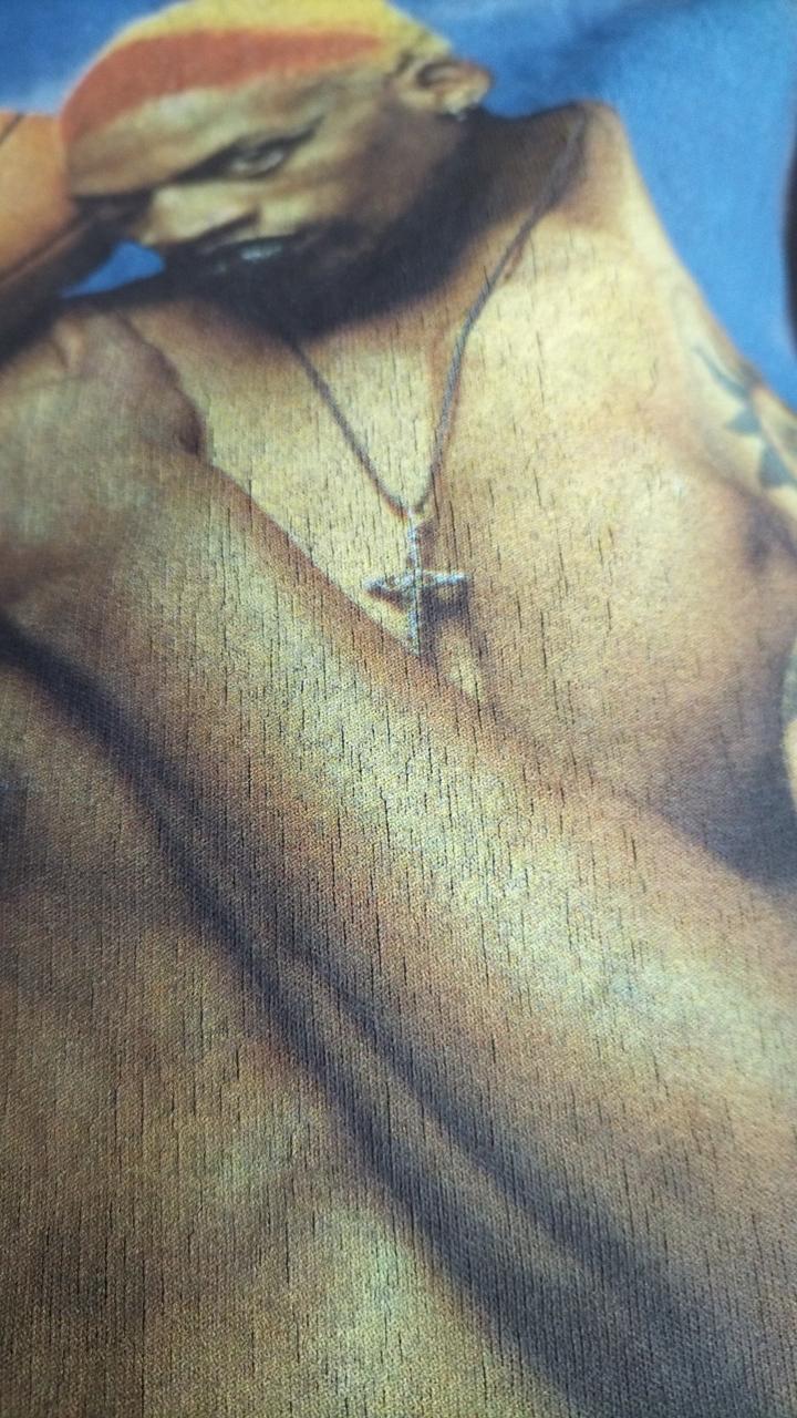 プリントにひび割れが見受けられますが汚れや大きなダメージもなく比較的綺麗です。背面に毛玉が見受けられます。 |