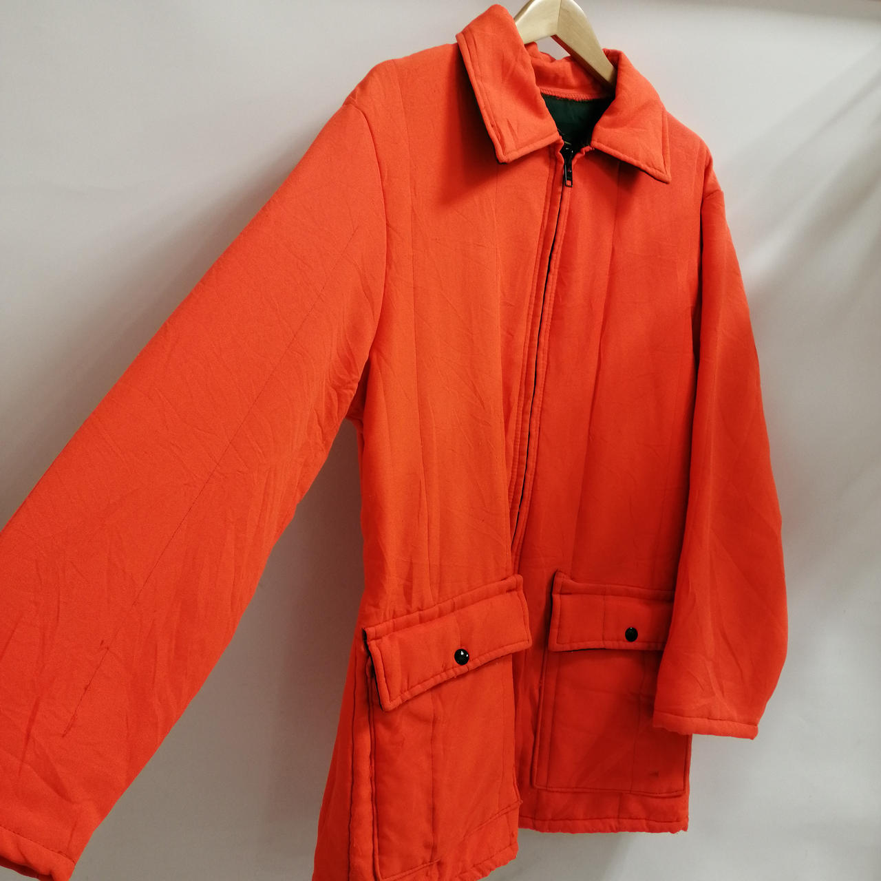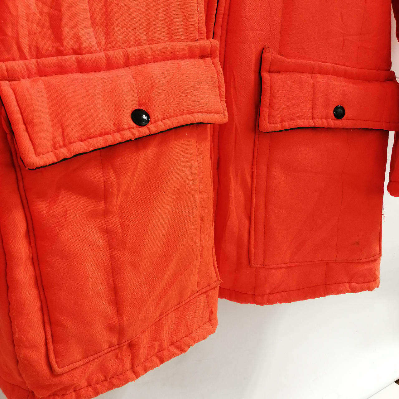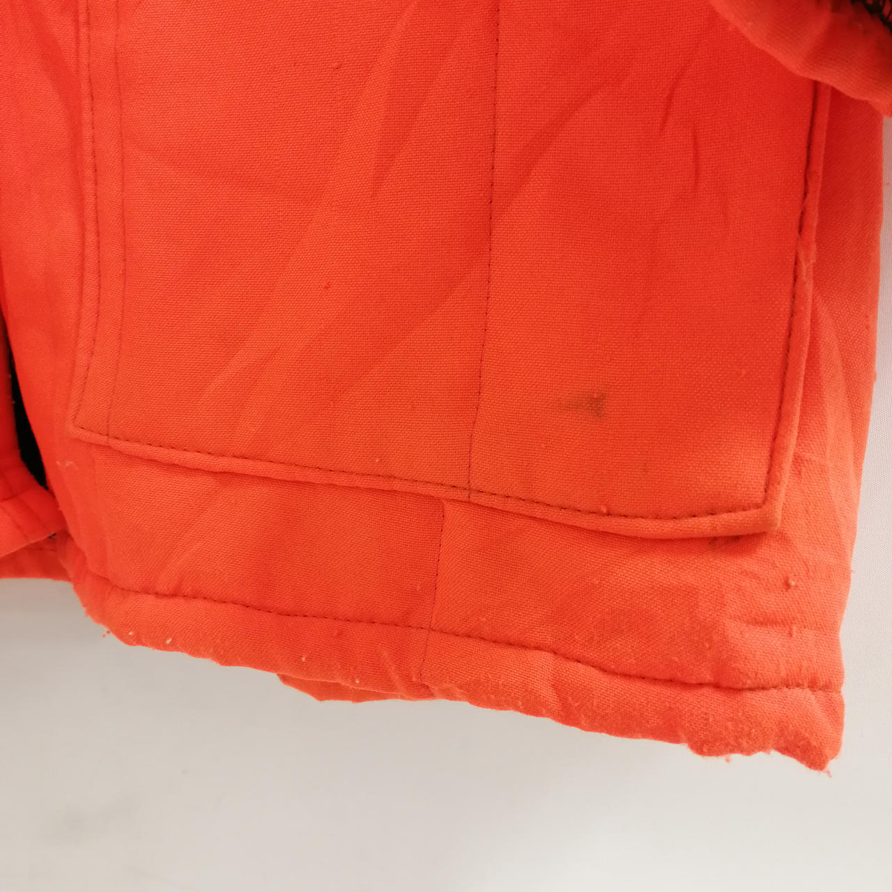 TIMBER KING ナイロンジャケット オレンジ M 全体的に着用感、毛羽立ちがございます。糸ホツレや汚れも見受けられます。状態をよくご確認ください。 |