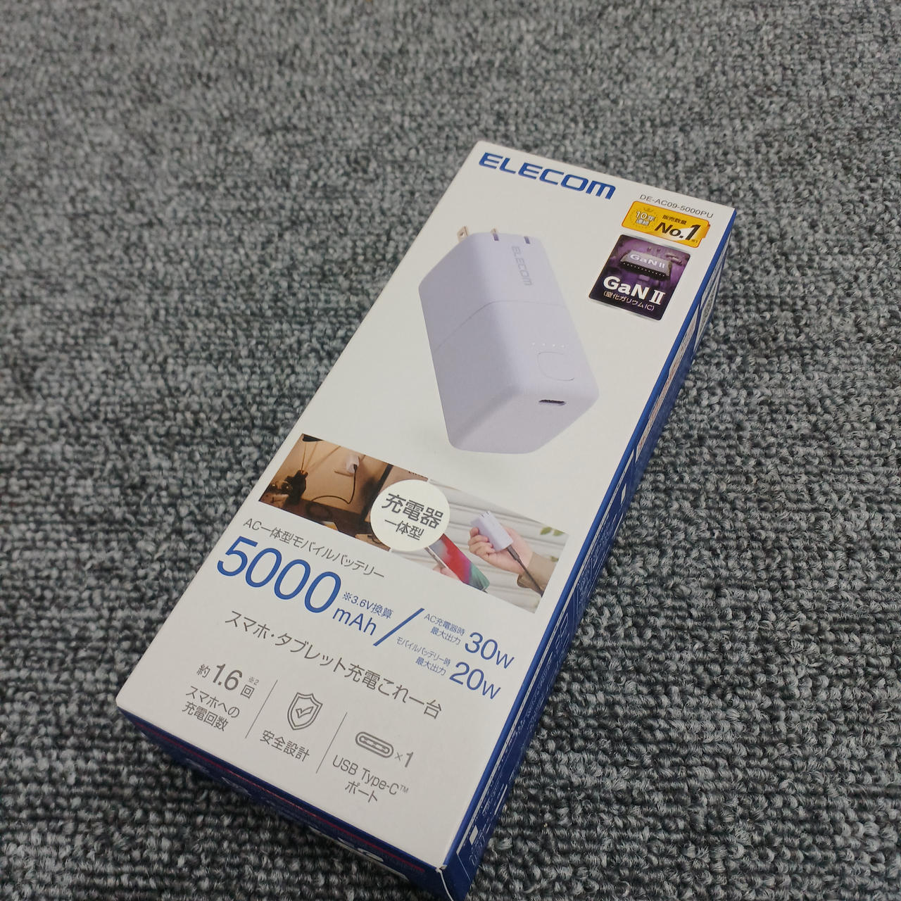 5000mAhのAC充電器一体型モバイルバッテリー |