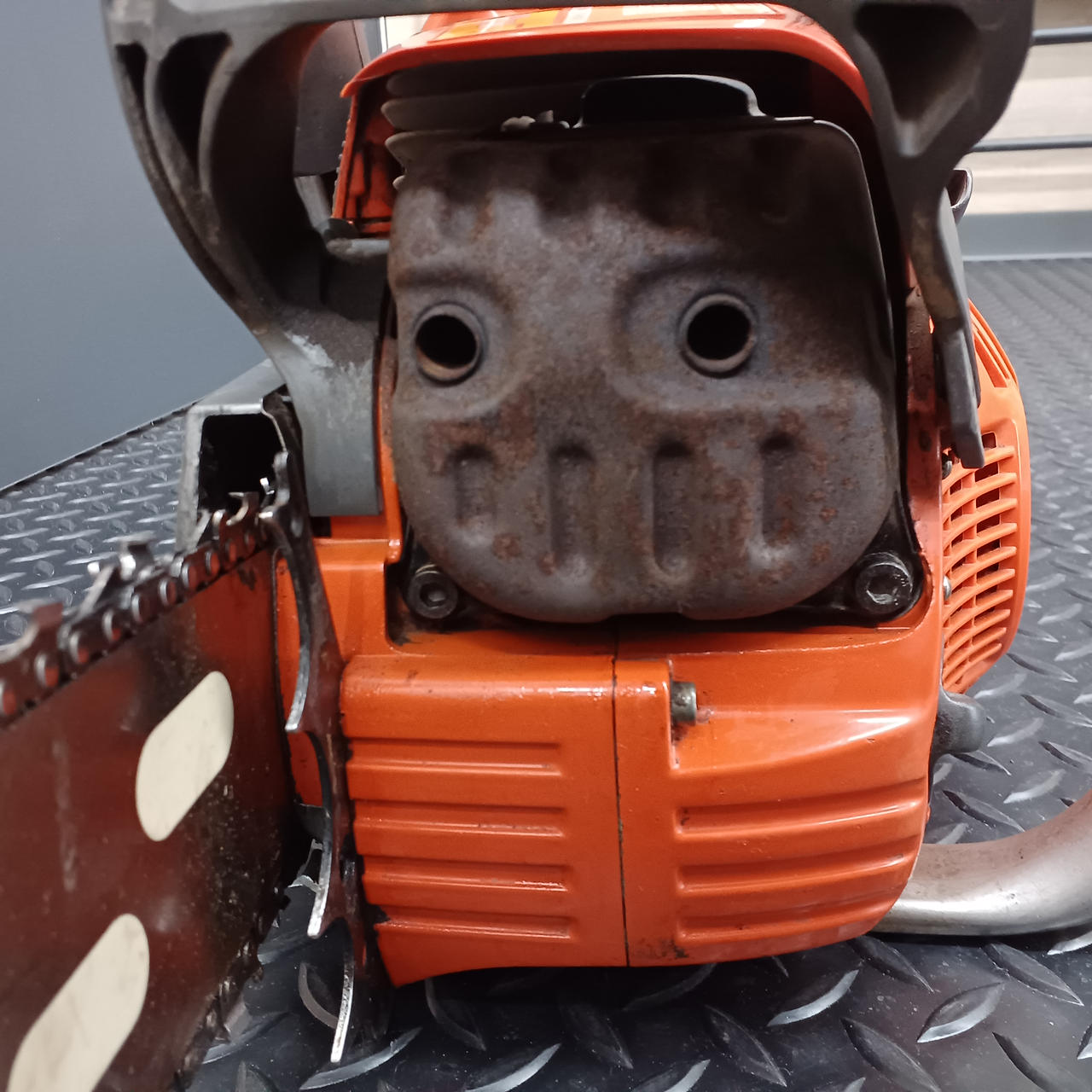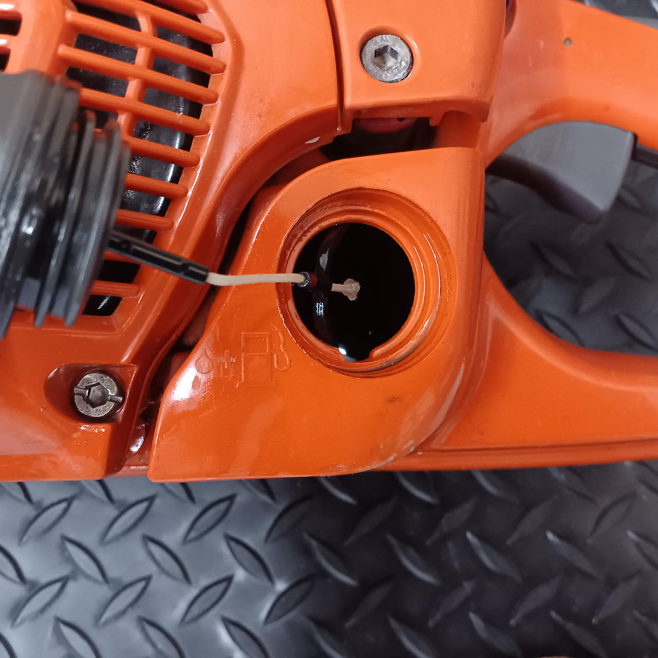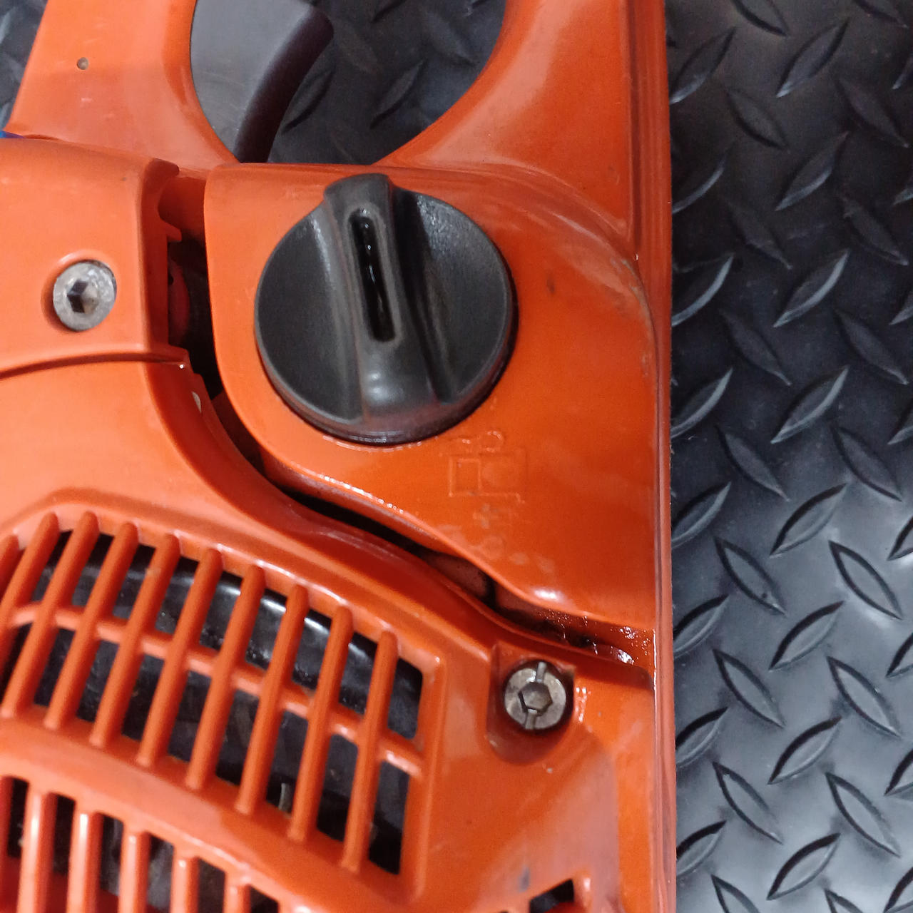 ※エンジンチェーンソーでの宿命のオイル漏れが発生しています |