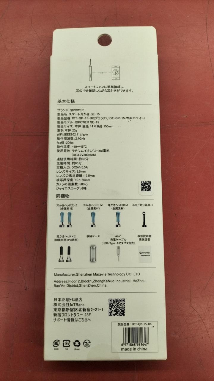 QiPower スマート耳かき QE-15 見える耳かき 防水 防塵 IP67 500万画素 |