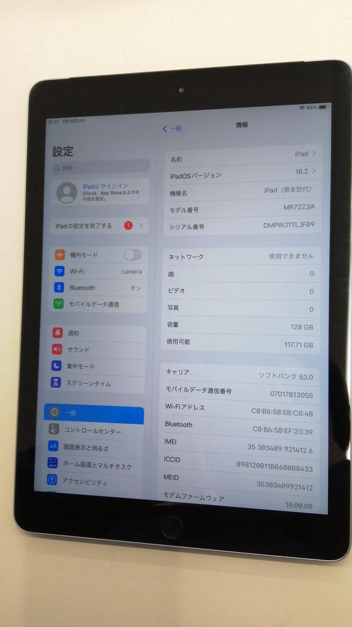 ストレージ:128GB 画面サイズ:9.7インチ カメラ:800万画素 |