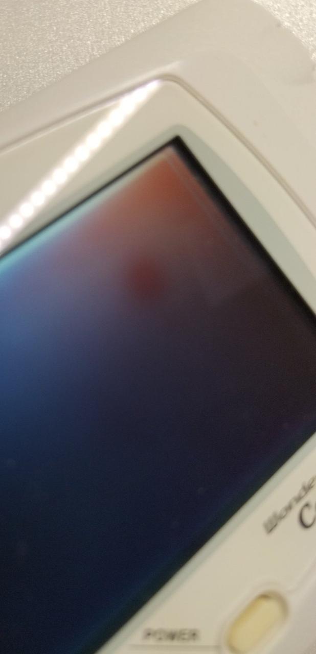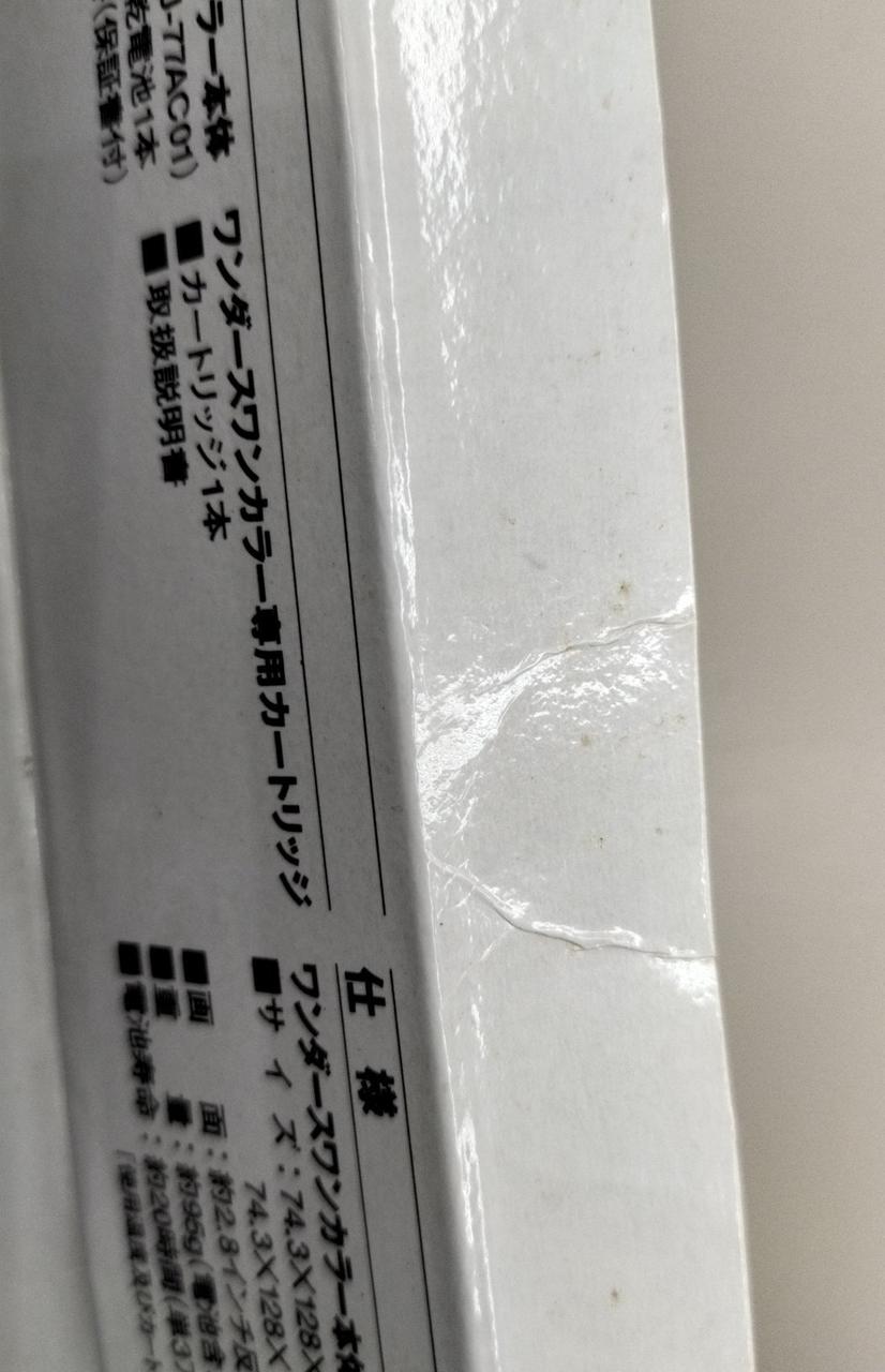 紙部分に全体的にヤケや折れなどのダメージが有ります。液晶画面の右上に暗い場所があります。ご確認下さい。